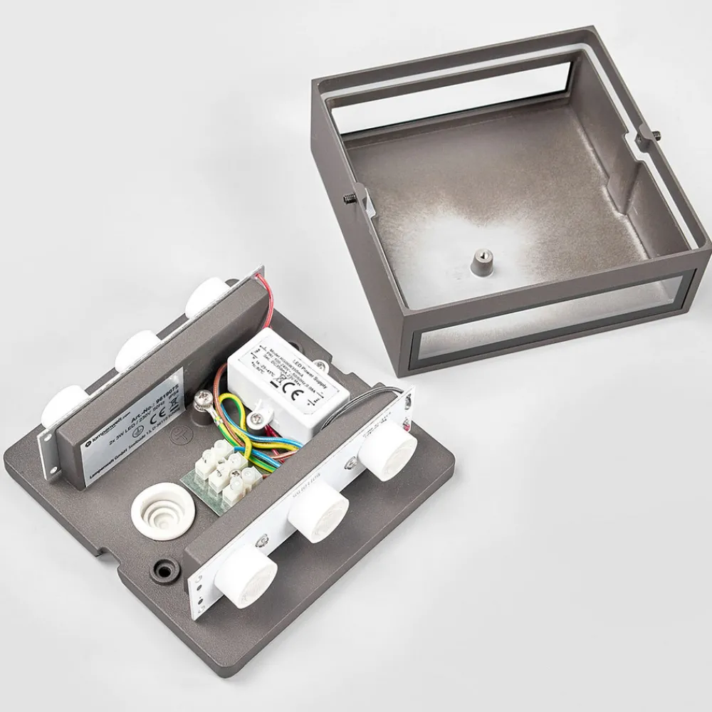 Kvadratisk LED utendørs-vegglampe Trixy i grafittgrålakkert aluminium Trixy er en utendørs LED-vegglampe med et svæ…