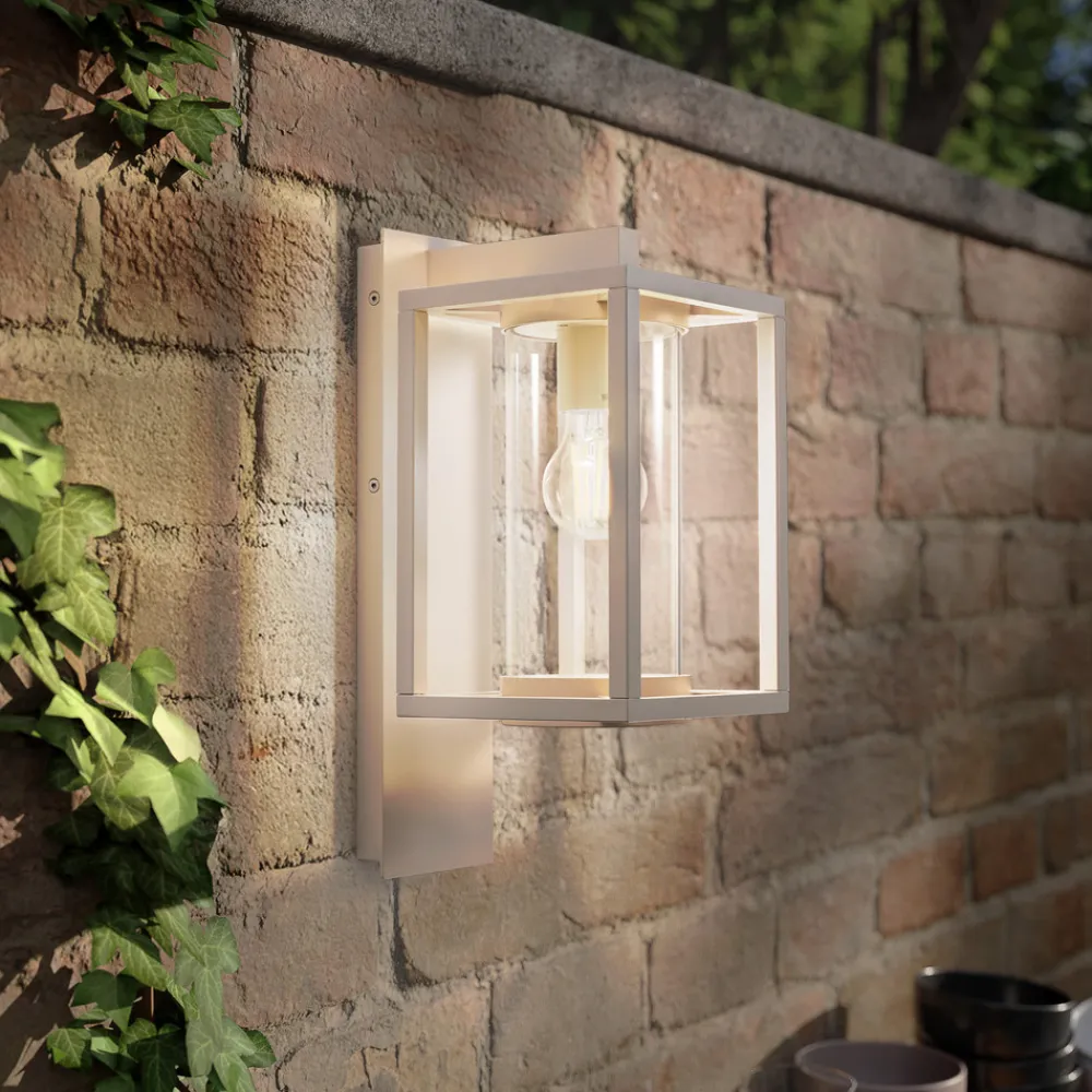 Ferda kantet utendørs vegglampe – eleganse for uteplasser og balkonger Ferda utendørs vegglampe kombinerer moderne design med elegansen til et hengende belysningselement i beige og glass. Armaturen er spesialdesignet for utendørs bruk, noe som gjør den til en ideell lyskilde for uteplasser og balkonger. Det stilrene utseendet skaper en atmosfære som kan virke både beroligende og energigivende. Lampen er ikke utstyrt med en integrert dimmer, men gir mulighet til å justere lysintensiteten individuelt ved hjelp av en ekstern dimmer. Med utendørs vegglampen Ferda blir ethvert uteområde badet i en fascinerende lysopplevelse.