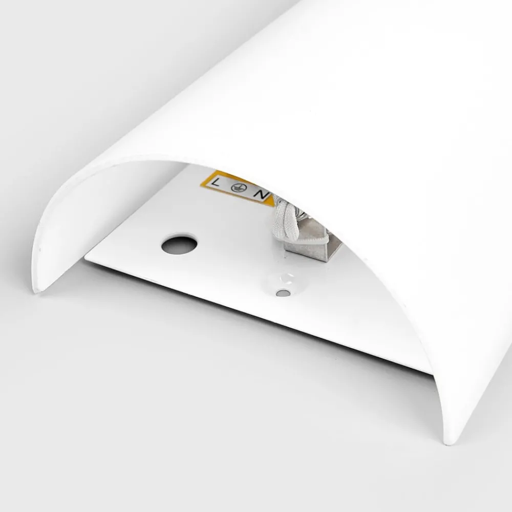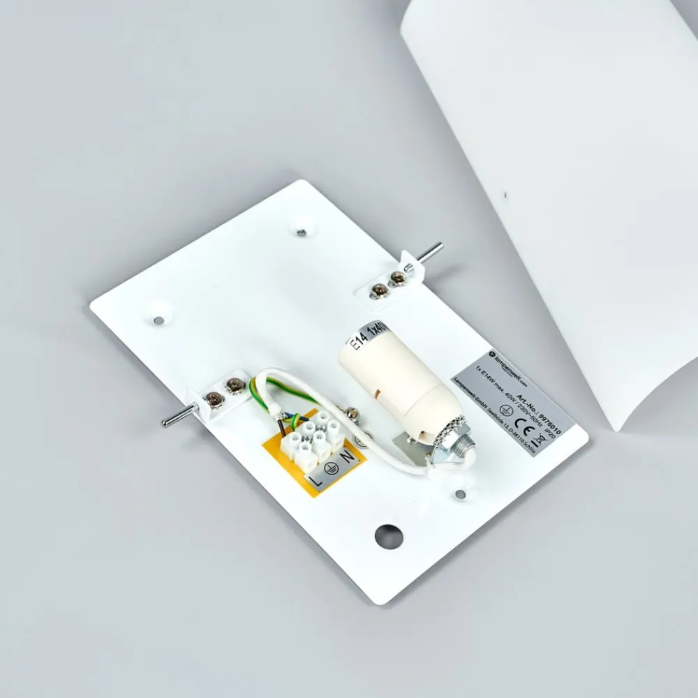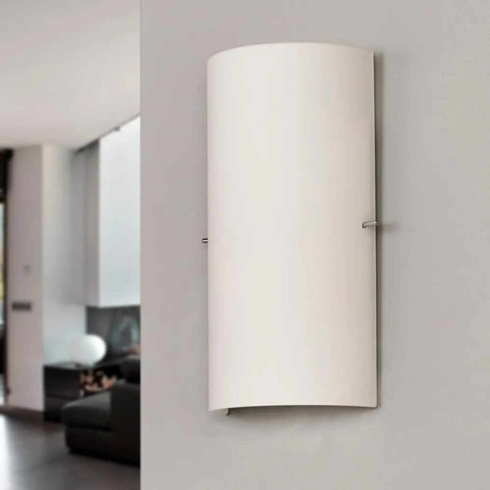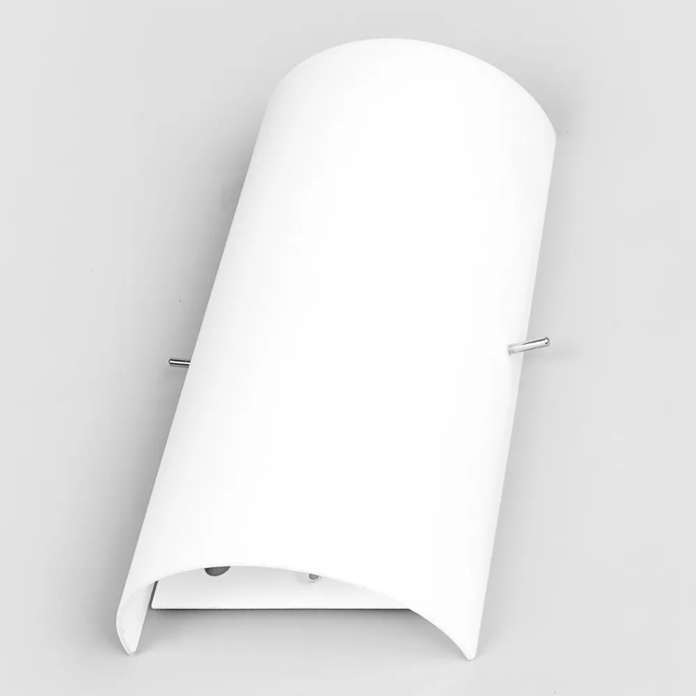Universell glassvegglampe Sidra med halvsirkelformet skjerm Når du ser Sidra forfra, består vegglampen ganske enkelt av en svært diskret, hvit skjerm i glass. Det betyr også at vegglampen faktisk passer inn i alle omgivelser, fordi designet ikke er sentrert rundt en bestemt stil, men utstråler noe utrolig tidløst. Du kan bare konsentrere deg om det vakre lyset som Sidra er i stand til å produsere. Takket være den hvite glassskjermen er den fantastisk koselig og innbyr til avslapping og opphold. Vegglampen egner seg ikke bare som stemningsfull tilleggsbelysning, men er også perfekt som dekorativ aksentbelysning.