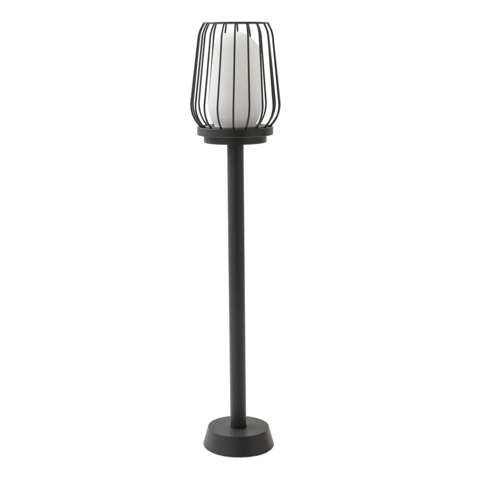 Slank Chandan veilampe i aluminium med burskjerm Chandan veilampe gir et behagelig belysningskonsept til uteområder. Den gir en behagelig belysning av en sti i hagen og er perfekt for utendørs bruk takket være kapslingsgrad IP54. Det betyr at den er beskyttet mot vannsprut og støv. Chandan kan utstyres med E27-pærer, og pærer med glødetråd er spesielt godt egnet på grunn av den frie utsikten til lyskilden. Disse har et spesielt utseende og fremhever armaturens design ytterligere. Ved behov kan Chandan veilampe kombineres med andre lamper i serien for å skape et harmonisk helhetsinntrykk.