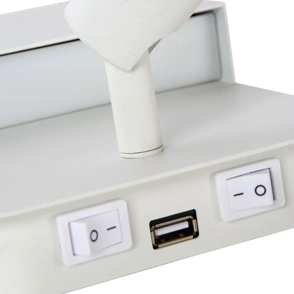 Hvis du ser etter en moderne vegglampe, er Boxer midt i blinken. Lampeboligen er en enkel rektangulær stålform med avrundede hjørner. På undersiden finner du en roterende og svingbar LED-spot, som gir direkte, justerbart lys. En ekstra, nedovervendt liste med LED-lys skjules bak den øvre delen av stålboligen. Begge lyskildene kan betjenes separat ved hjelp av bryterne som ligger på undersiden av lampen. På samme sted ligger en USB-ladeport.