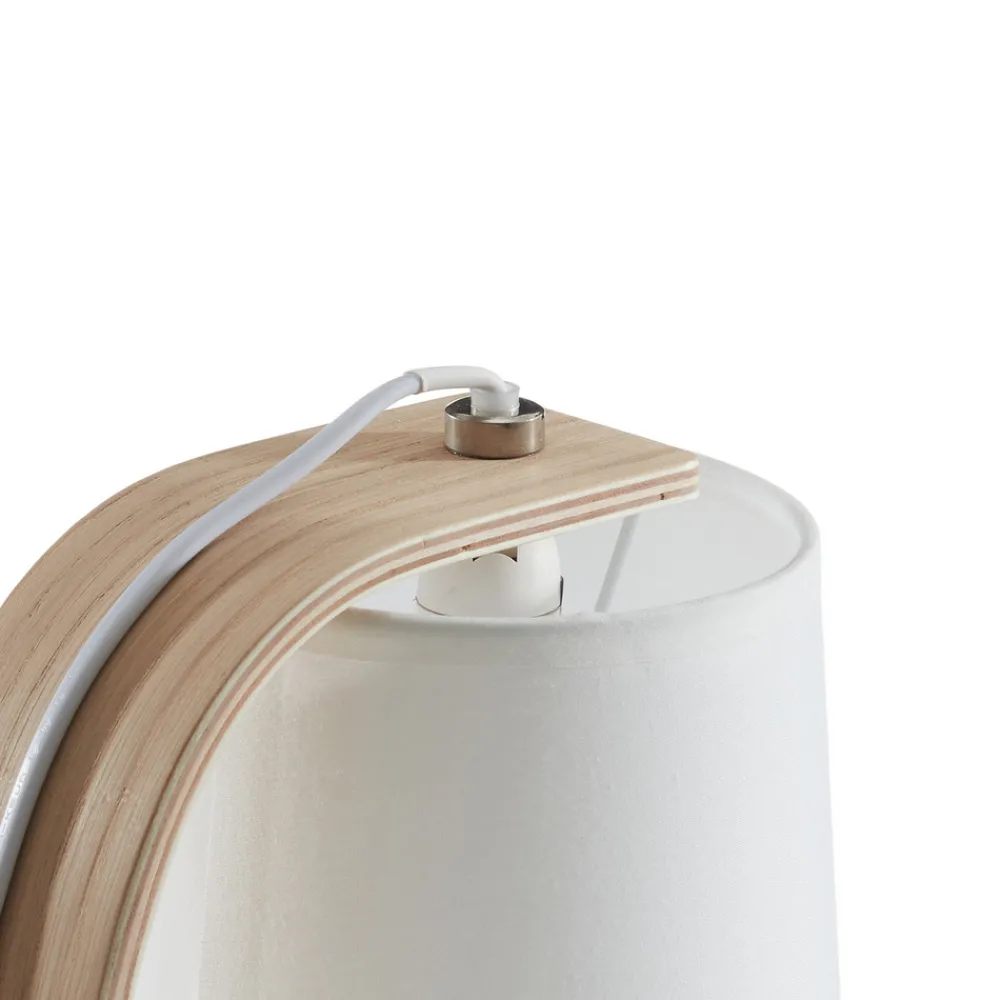 Nordic bordlampe i tre med hvit tekstilskjerm Nomen est omen: Denne vakre bordlampen ser ut akkurat som den heter – Nordic – og er en tidløst vakker ekstra lyskilde som kan brukes på mange forskjellige måter i hjemmet i kombinasjon med en rekke ulike møbler. Som nattbordslampe på soverommet, som aksentbelysning i stuen eller som innbydende lyskilde i inngangspartiet – Nordic er et hyggelig blikkfang overalt. Skjermdimensjoner – høyde 16 cm, Ø nederst 15 cm, Ø øverst 12 cm