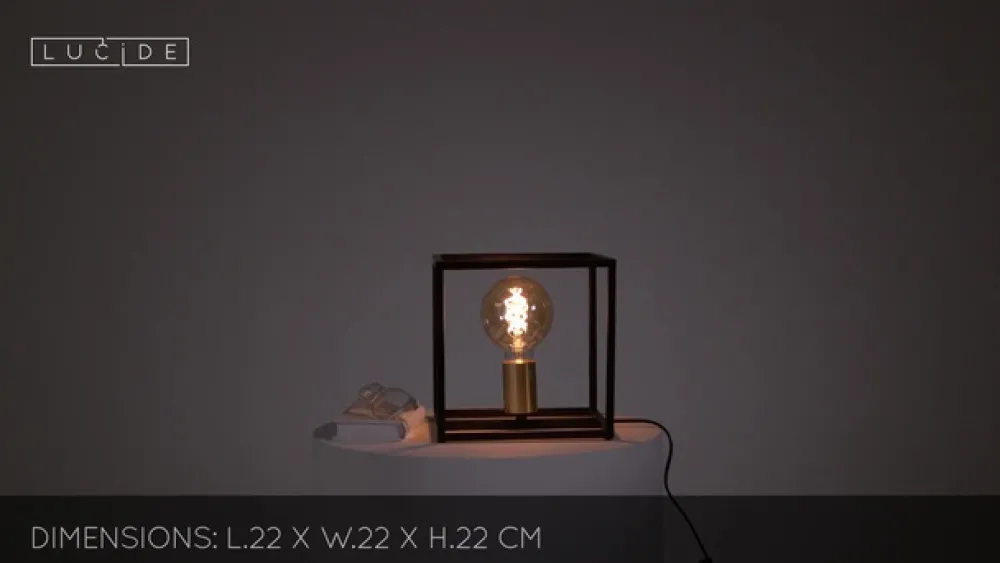 Ruben bordlampe med av/på-bryter for enkel betjening Ruben bordlampe er ideell for koselige, rolige hjørner i huset der du ikke trenger mye lys, men ønsker å slappe av og for eksempel lytte til musikk. Det beste er å bruke en varmhvit LED-pære i glødetrådsoptikk til E27-sokkelen for å skape den rette stemningen. Ruben har et veldig tydelig formspråk og ser ut som en kube. Den nåværende metallrammen holder lyskilden i midten i en gullfarget fatning. Ruben bordlampe kan integreres sømløst i alle typer interiørdesign og tar nesten ingen plass. Ruben bordlampe fungerer som tilleggsbelysning og stemningsbelysning og kan enkelt slås av og på med en bryter på ledningen.