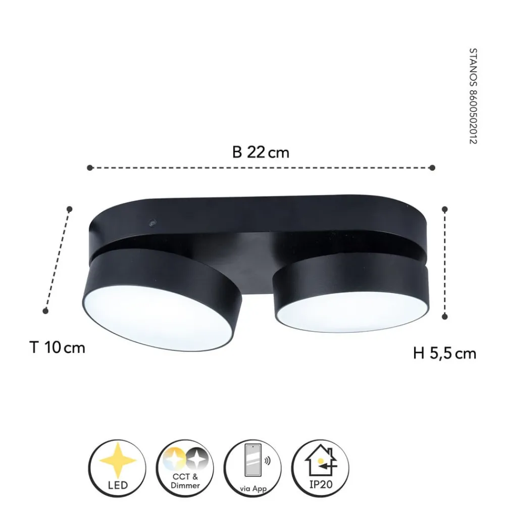Lysstyrken samt fargetemperaturen kan styres via den gratis Lutec connect-appen med en smarttelefon eller nettbrett. Fargetemperaturen kan varieres etter behov fra lysfargen varm til dagslyshvitt. Med den integrerte Bluetooth mesh-teknologien er det også mulig å koble Stanos i nettverk med andre lys.