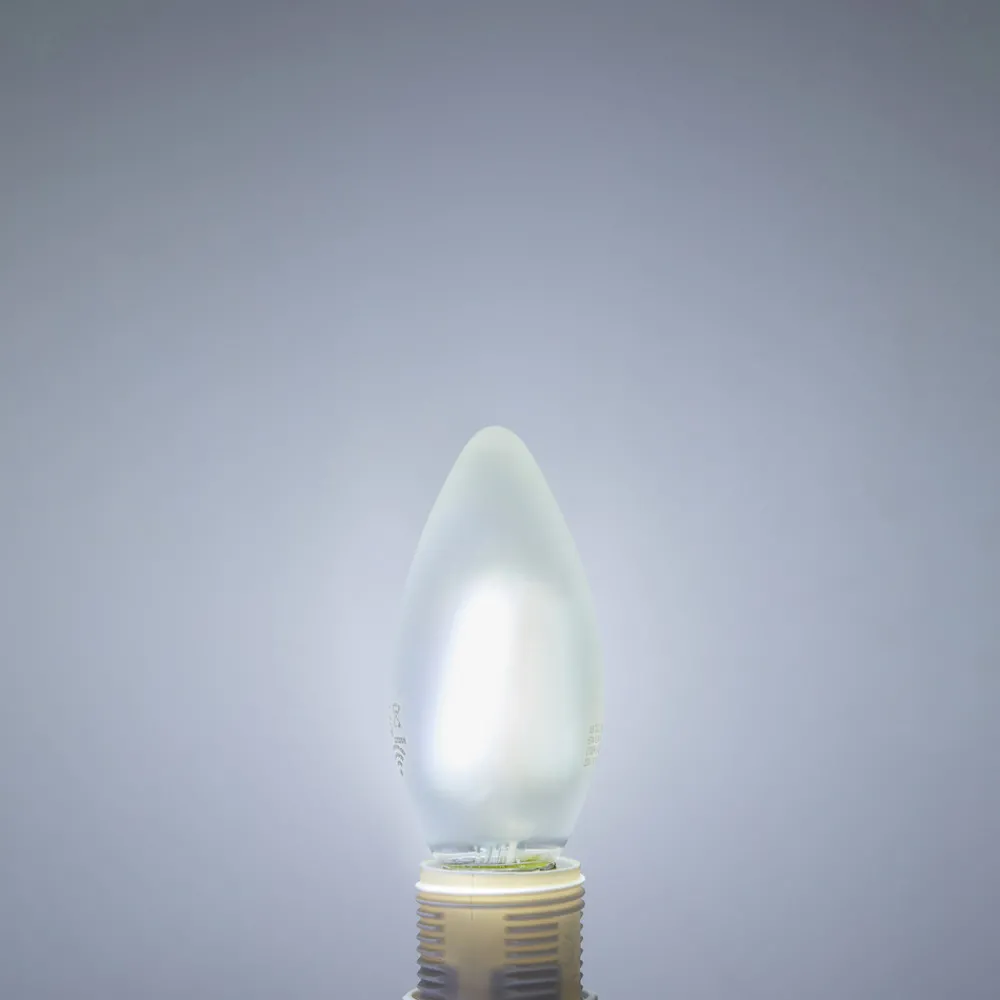 Lysformet LED-pære med E14-sokkel – kan integreres i WLAN-nettverket Denne lyskilden passer til armaturer med E14-fatning. Den er laget av glass og har en matt overflate. Den kan integreres i Wi-Fi-hjemmenettverket og styres ved hjelp av den gratis Tuya-appen (tilgjengelig for iOS og Android). Lysfargen kan også justeres fleksibelt mellom varmhvit (2700 K) og dagslys (6500 K). Stemmestyring er også mulig ved hjelp av Amazon Alexa eller Google Assistant, og pæren kan også styres ved hjelp av LUUMR-appen. Denne er tilgjengelig for både Android og Apple og kan enkelt lastes ned på https://play.google.com/store/apps/details?id=luumr.app&hl=en_US eller https://apps.apple.com/de/app/luumr/id6470302637