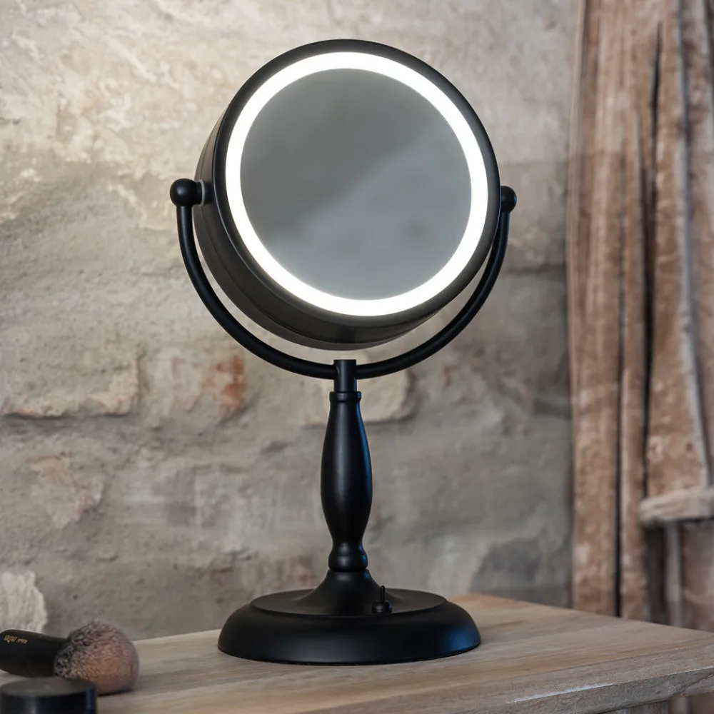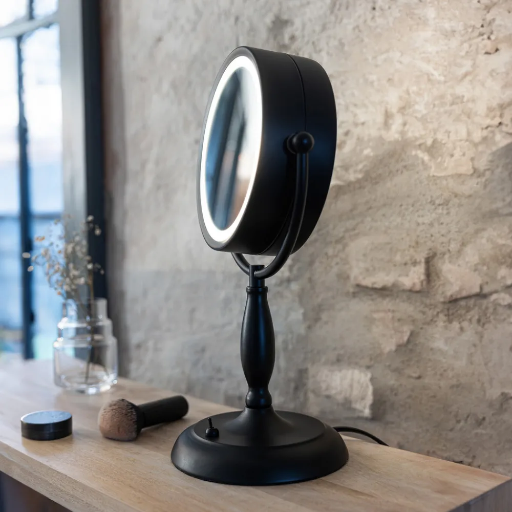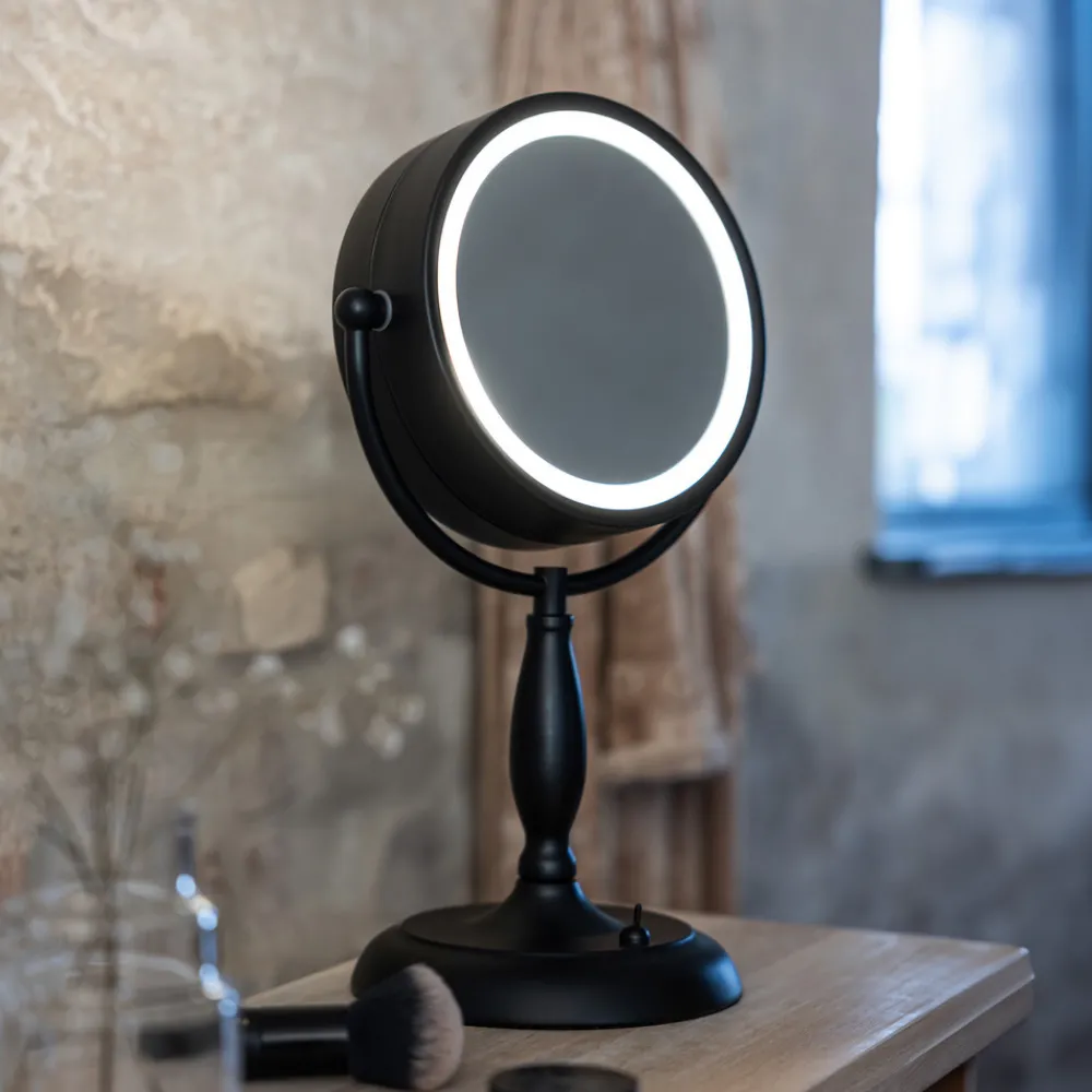 Bordspeil med lys, svart, metall, høyde 36 cm