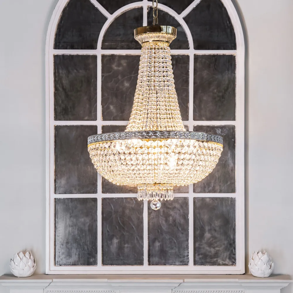 Belysningskunst for stue og spisestue: Maytoni Bella lysekrone Eleganse og glamour forenes i Maytoni Bella lysekrone, et mesterverk som transporterer stue og spisestue inn i en verden av glamour og eleganse. Den gullfargede overflaten reflekterer lyset fra krystallene og skaper en atmosfære som kan virke både beroligende og stimulerende. Lysekronen er ikke bare et belysningselement, men et sentralt punkt i romopplevelsen, og beriker atmosfæren med sitt fascinerende samspill mellom lys og skygge. Selv om lysekronen ikke er utstyrt med en dimmer, kan lysintensiteten tilpasses ved å installere en ekstern dimmer for å skape ønsket stemning. Maytoni Bella lysekrone er en investering i et stilfullt hjem som forvandles av lysets kraft.