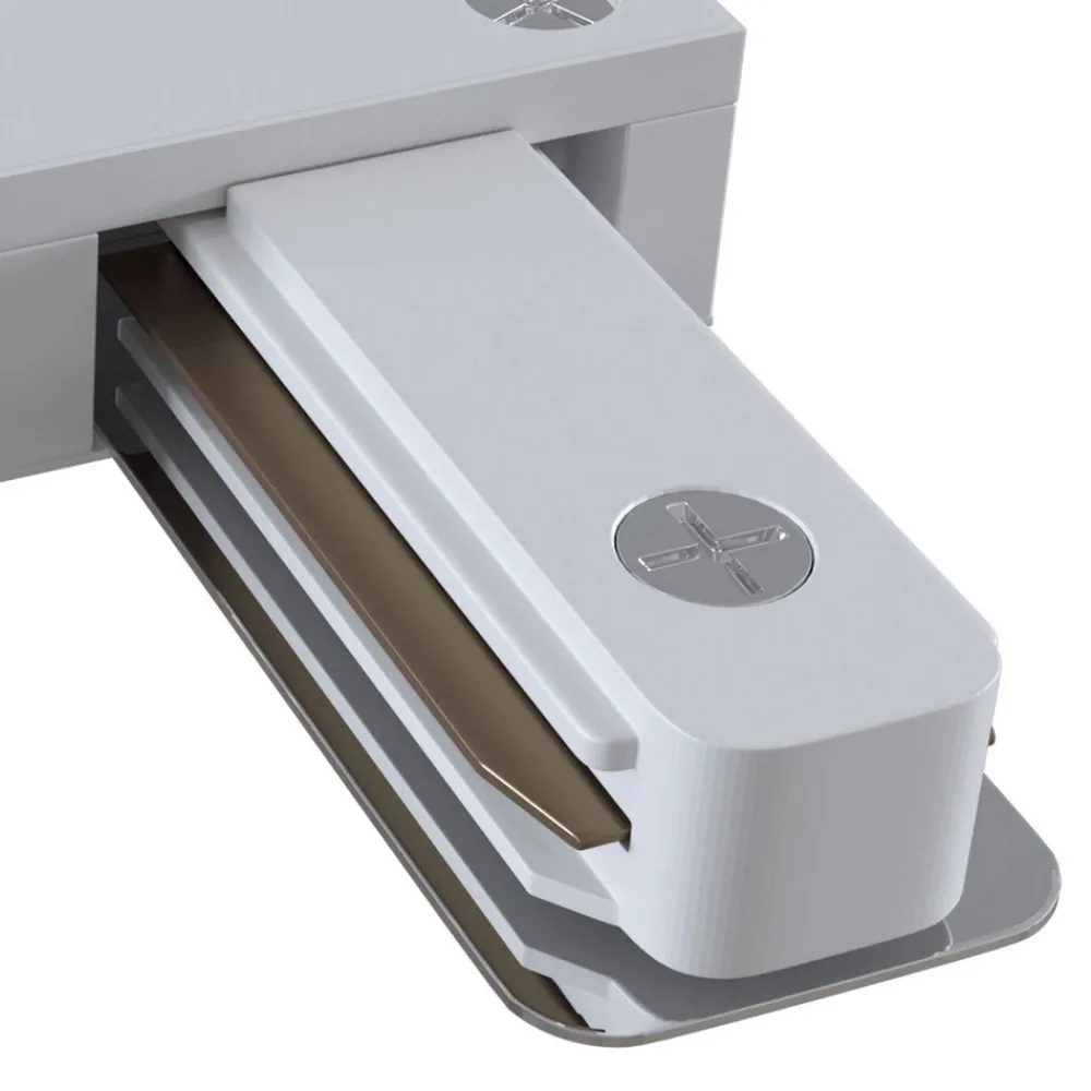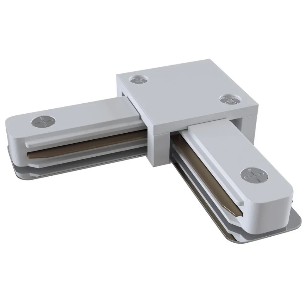 L-koblingsskinne for 1-fase skinne i hvitt Dette enkeltelementet kan brukes til å koble sammen to skinner i 90° vinkel.