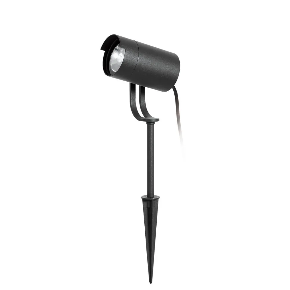 Utendørs spotlight Gartia er laget av robust aluminium og er også utstyrt med beskyttelsesklasse IP65. Den er derfor ideell for utendørs bruk og kan festes med jordspyd eller bunnplate, avhengig av plassering og krav. Gartia er ideell for målrettet belysning av trær, blomsterbed eller dekorative gjenstander. Pæren er ikke inkludert og kan velges etter personlige behov.