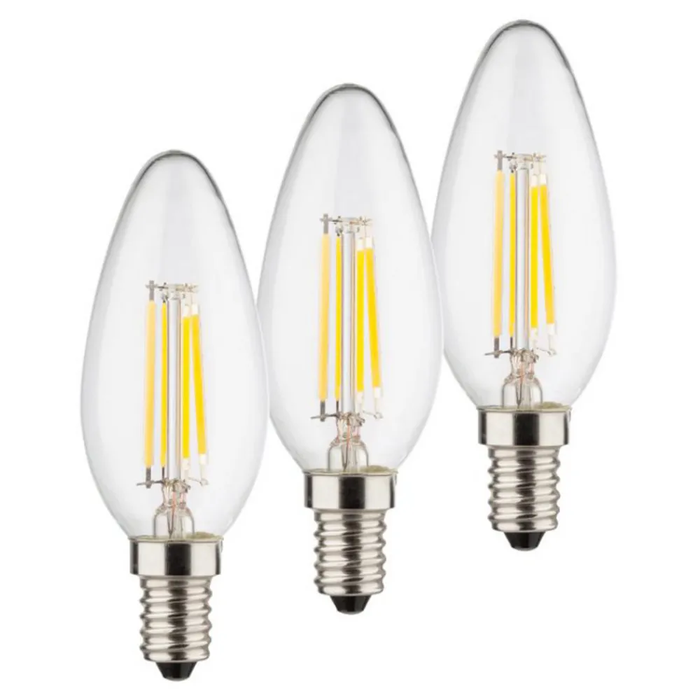 LED stearinlyspære E14 4W, varmhvit (2700 K), glødetråd, klar i sett med tre (flerpakning)