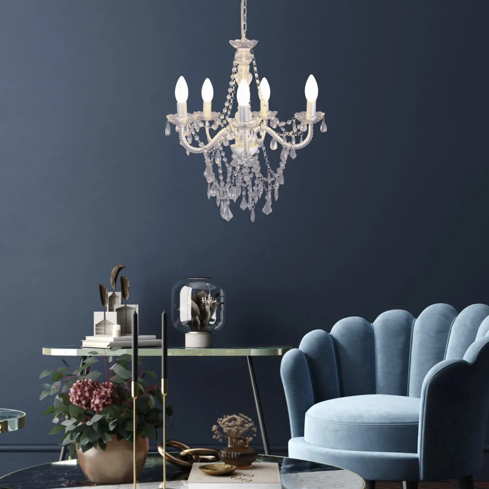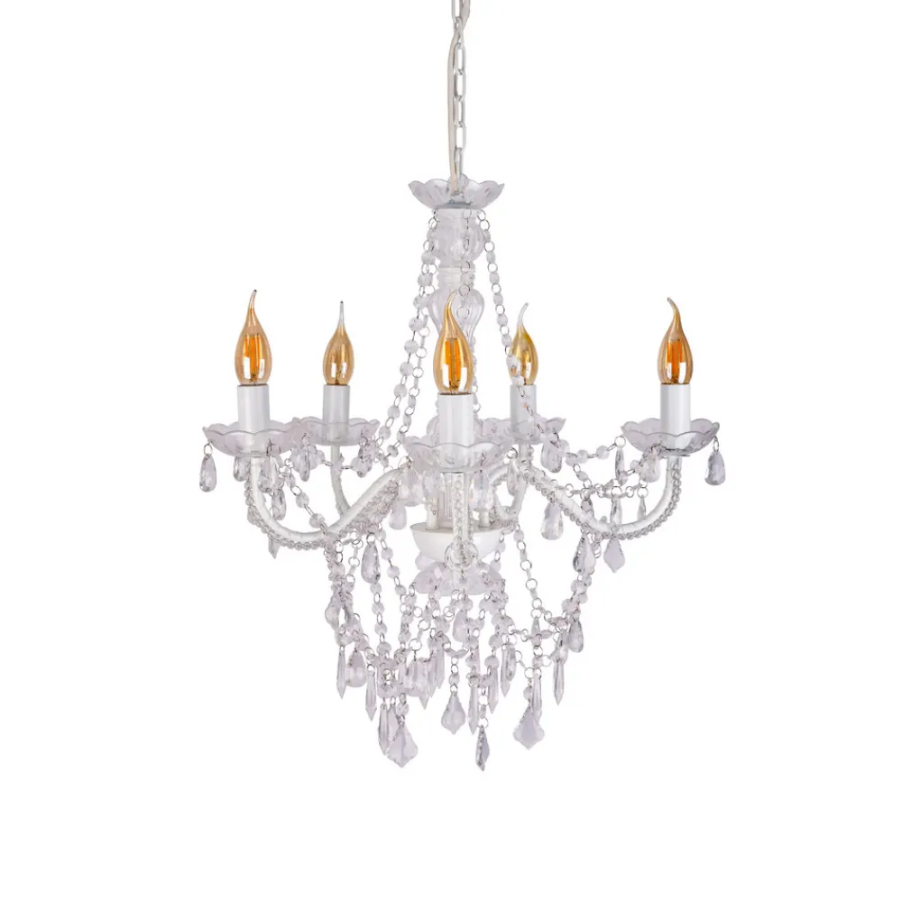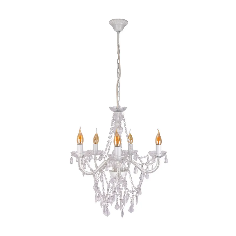 Cecilia lysekrone, hvit, jern/akryl, Ø 52 cm, 5 lyskilder.