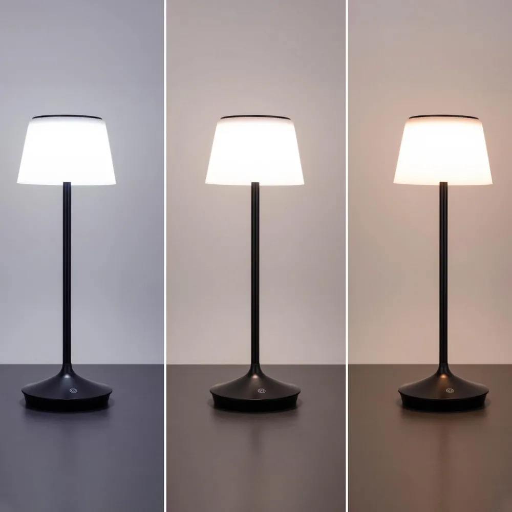 LED-solcelle-bordlampe Emmi CCT oppladbar, svart