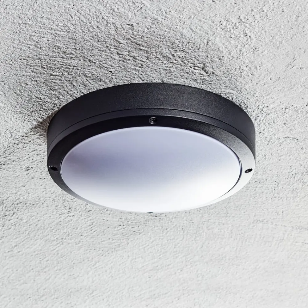 Gjennom den satinerte diffusoren av polykarbonat gir taklampen Desi jevn belysning i uteområdene. Med med en sparepære eller LED-pære er den i tillegg veldig energisparende. Den lakkerte metallrammen står i sterk kontrast til et hvert tak. En passende lyspære finner du på tilbehørssiden, og kan enkelt legges ved bestillingen. LED-pærer eller sparepærer inntil 12 watt er best egnet.