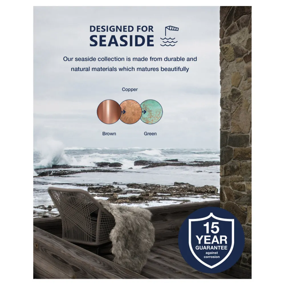 Kobberoverflaten gir den et individuelt harmonisk preg. Kapslingsgrad IP44.