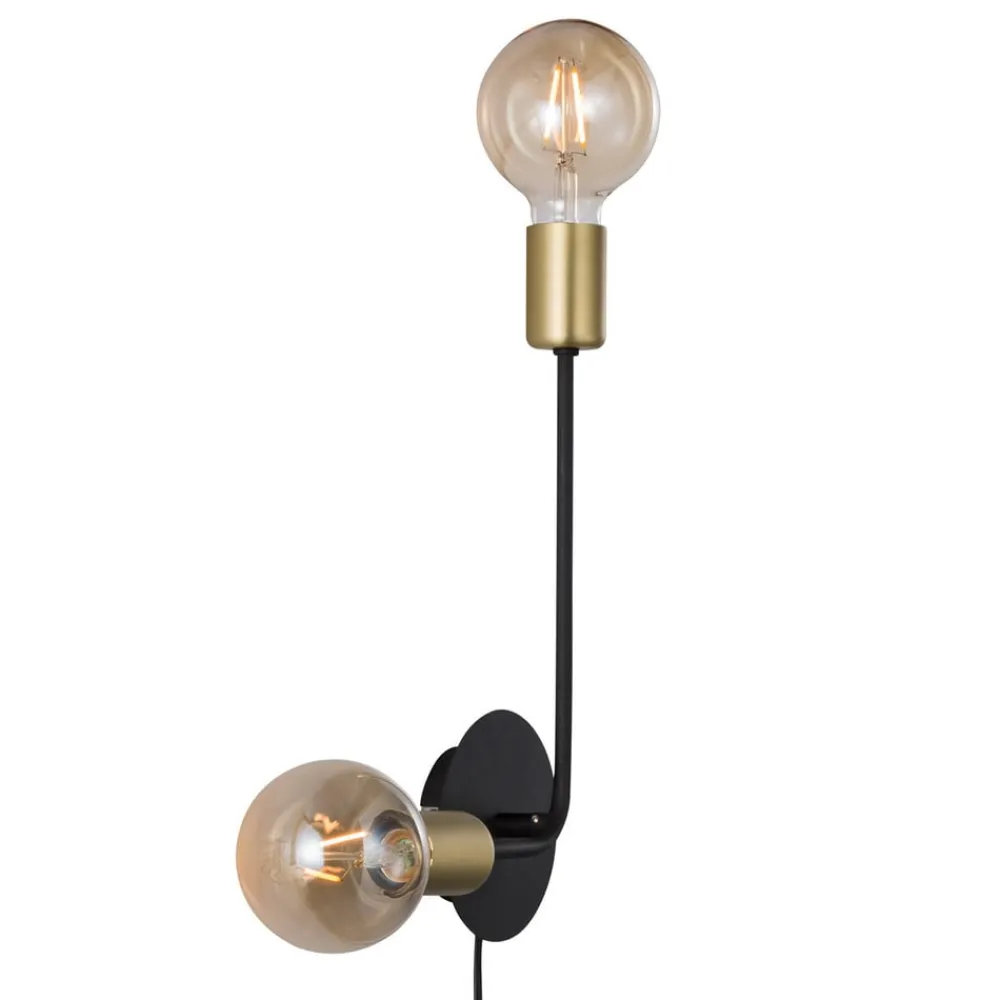 Svart vegglampe Josefine med messingdetaljer, kabel og plugg