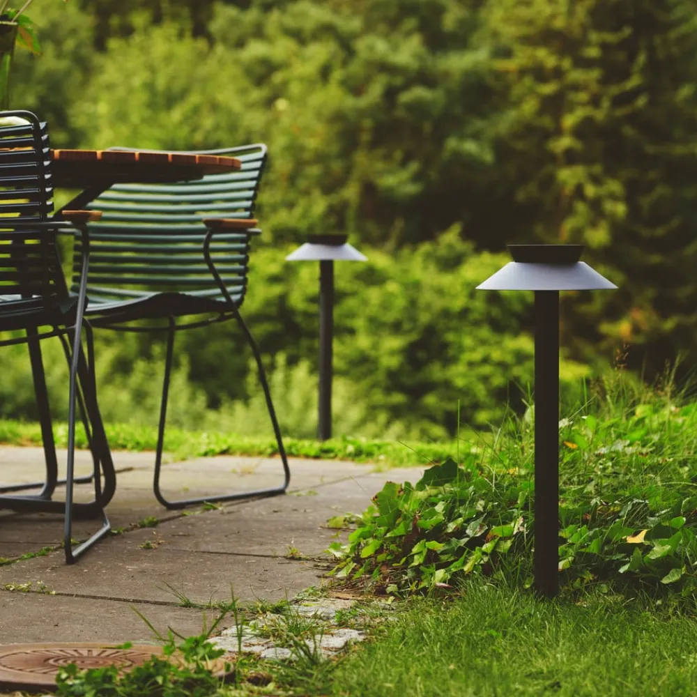 Solcelledrevet Justina LED-gangbelysning med sensorer Justina-gangbelysningen kan brukes trådløst og helt uavhengig for å skape stemningsfulle lyspunkter i hele uteområdet og lyse opp stier, uteplasser eller innkjørsler. Det integrerte, oppladbare batteriet lades av solcellepanelet på toppen av lampeskjermen og gir gratis lys fra de innebygde, varmhvite LED-lampene. Den integrerte dagslyssensoren aktiveres av bevegelsesdetektoren når lysnivået er under 7 lux; bevegelsesdetektoren registrerer bevegelse i en avstand på 5 til 8 meter og slår automatisk på belysningen. Stibelysningen kan stikkes ned i plener eller uasfalterte flater med jordspydet eller skrus fast på asfalterte flater.