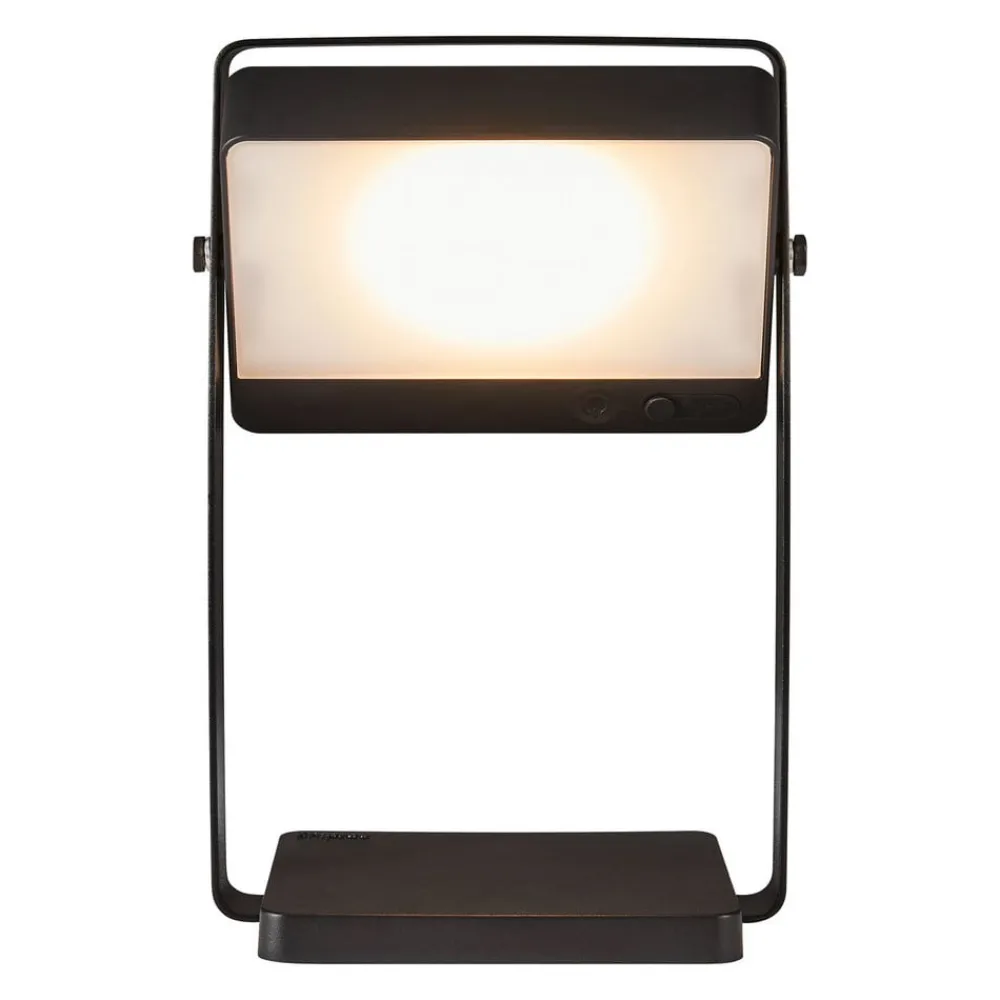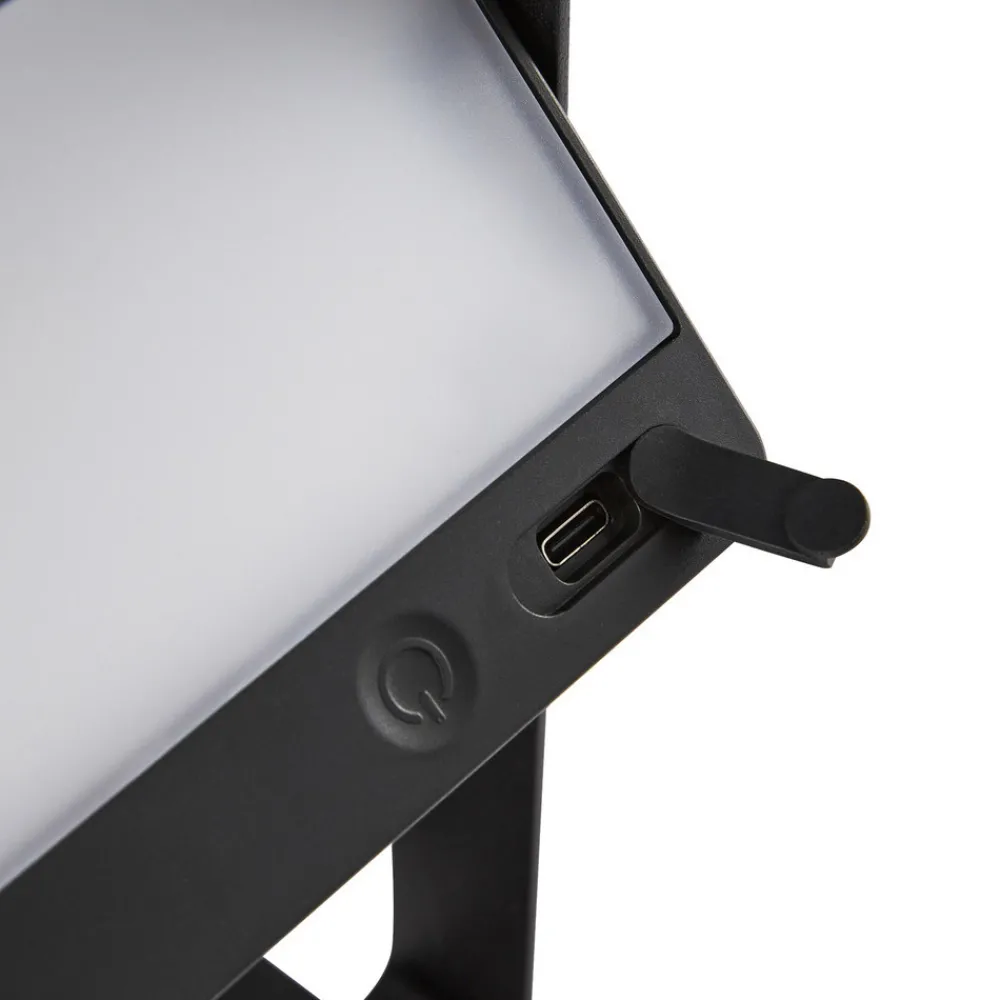 Saulio LED-terrasselampe med oppladbart batteri, solcellemodul og dagslyssensor LED-bordlampen Saulio er en praktisk, mobil lyskilde som ikke bare imponerer innendørs, men også på terrassen, i hagen eller på campingturen. Saulio er utstyrt med et oppladbart batteri som kan lades via en USB-C-inngang (USB-kabel for tørre inneområder er inkludert) eller via solcellepanelet på baksiden av hodet. Sistnevnte kan roteres 360° vertikalt i aluminiumsrammen, slik at den varmhvite LED-lyskilden foran kan justeres etter behov. LED-bordlampen kan dimmes i tre trinn ved å trykke på bryteren flere ganger – Kapslingsgrad: IP44 – Omgivelsestemperatur under drift: – 20 °C til + 35 °C – Spesielt fleksibel: batteridrift, oppladbar via kabel eller sollys – Design by Says Who