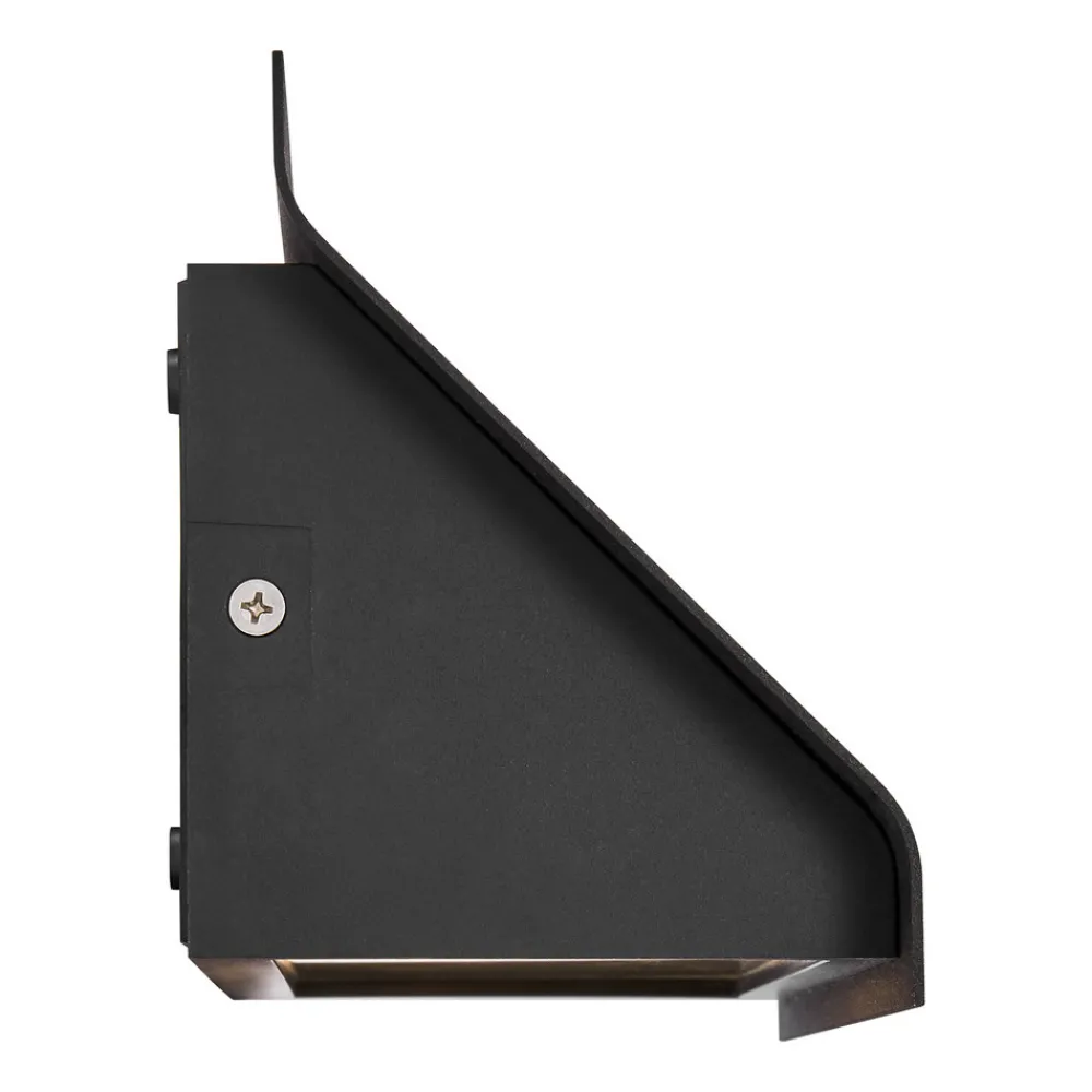 Tadas utendørs vegglampe i aluminium, nedadrettet lysstråle Den svarte utendørslampen Tadas fra den franske designeren Darrow har en strømlinjeformet og moderne design. Armaturen er laget av aluminium med svart finish og er utstyrt med en glassskjerm. Takket være den minimalistiske designen med klare linjer og svart overflate passer den til mange fasader, og i tillegg til å lyse opp inngangspartier eller uteplasser, skaper den også vakre lysaksenter på fasaden takket være lyset som bare sendes nedover – IP54-beskyttelsesgrad