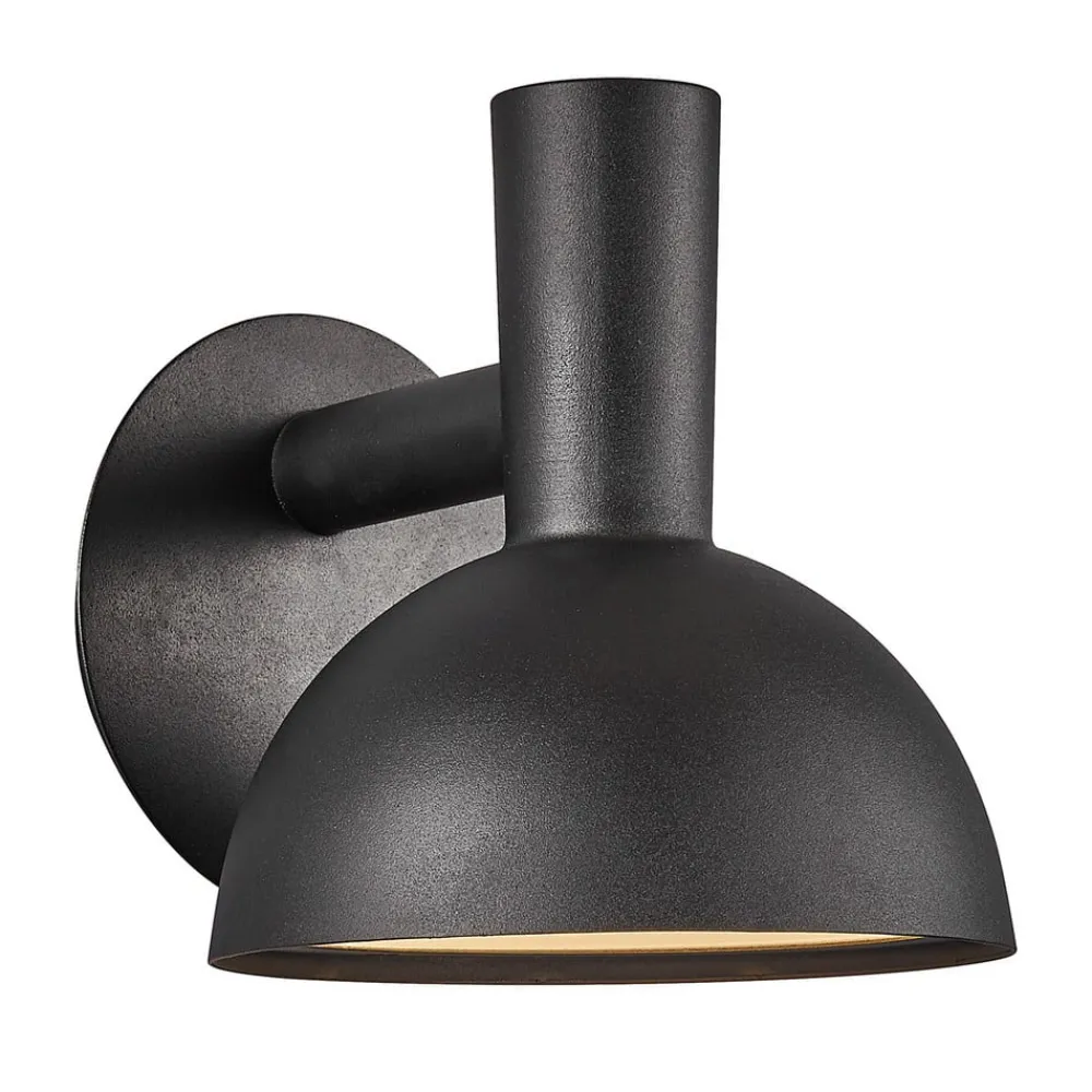 En vinklet arm fører fra veggmonteringen til den halvcirkelformede skjerm, som er åpen nederst. skjerm i galvanisert stål tillater bare belysning nedover og foran fatning er det et beskyttende glass laget av plast. Det robuste materialet er ment for utendørs bruk og tåler vind og vær. Festet til husets fasade eller garasjen gir tilstrekkelig belysning i omgivelsene. En parallell forbindelse er mulig.