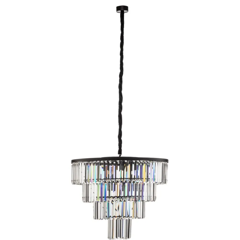 Hengelampen Cristal kombinerer den tidløse skjønnheten til krystallglass med robustheten til lakkert stål. Denne kombinasjonen av høykvalitetsmaterialer gir ethvert rom, enten det er stue eller spisestue, et spesielt preg. Lampen imponerer med sitt elegante design i transparent og svart finish, som passer både til klassiske og moderne interiørstiler.