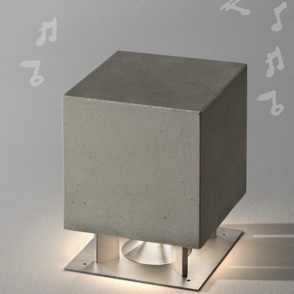 Firkantet LED-sokkellampe Cemento laget av betong – utstyrt med høyttaler