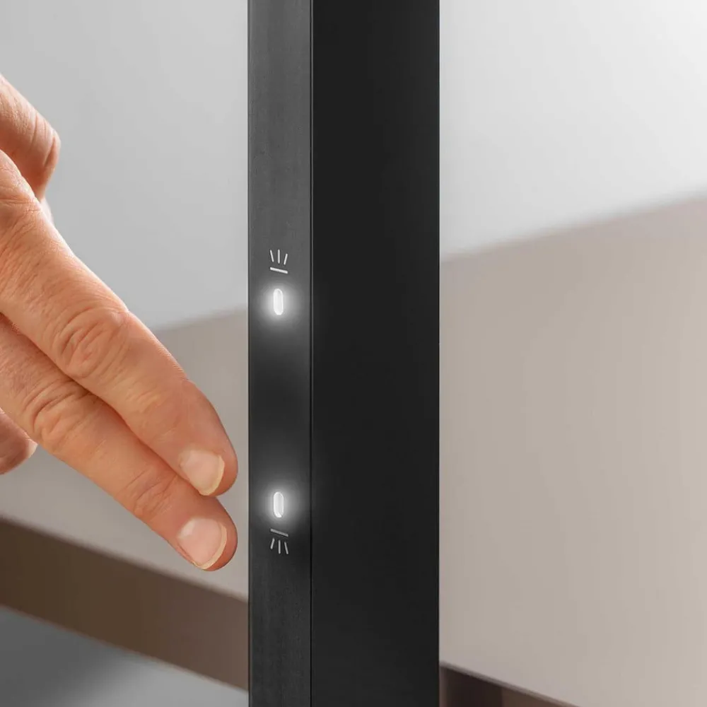 Crane LED-stativarmatur for kontorer – direkte og indirekte lysfordeling Crane LED-stativarmatur i slimline-design avgir varmhvitt lys oppover og nedover, som kan skiftes og dimmes separat med to trykknapper innebygd i rammen. Armaturen er laget av svart eloksert aluminium og egner seg godt til belysning av skrivebordene takket være det bredt utstikkende armaturhodet. Den frittstående LED-armaturen Crane kan brukes som en lyskilde av høy kvalitet både på hjemmekontoret og i kommersielle kontorer, biblioteker og forretningslokaler.
