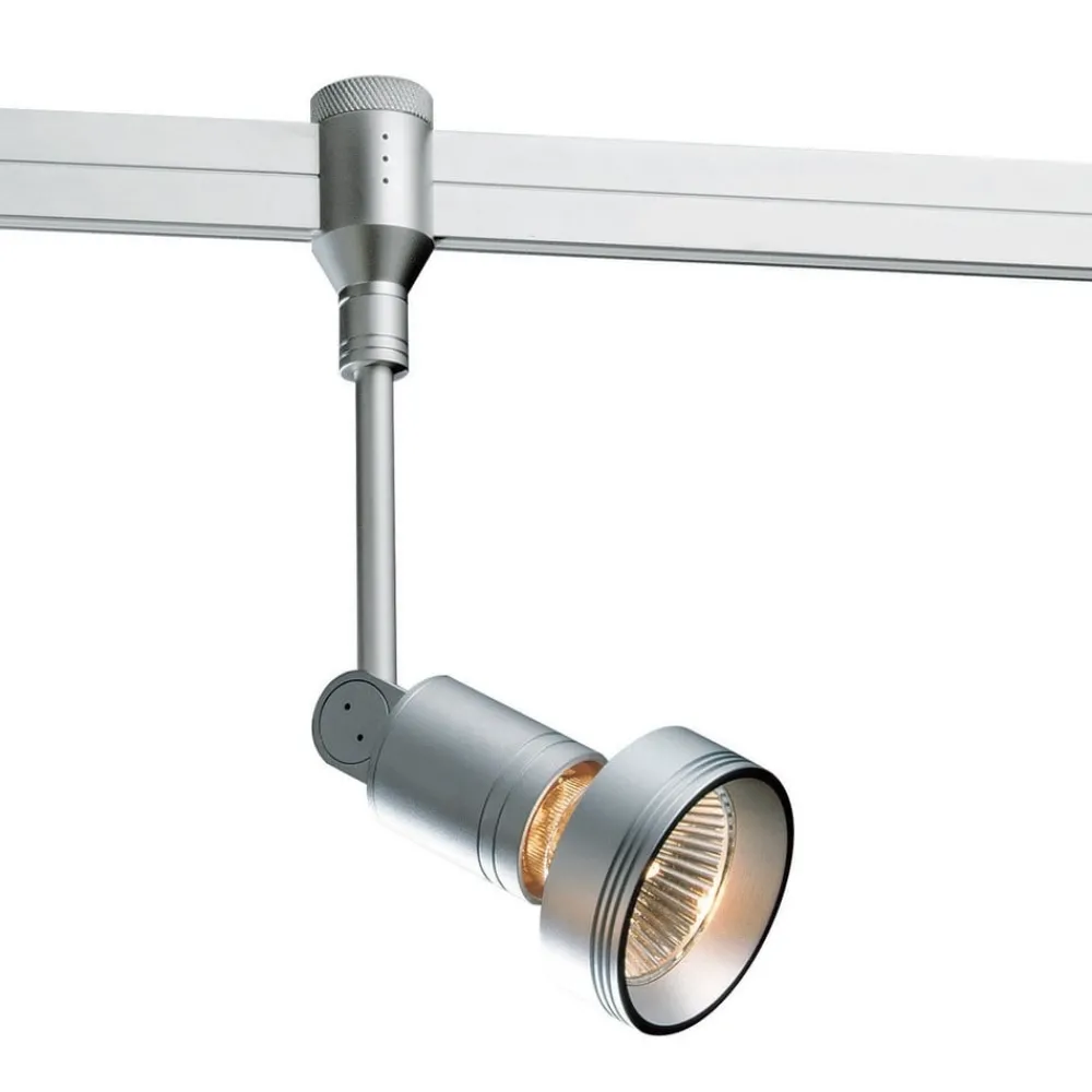Komponent for 1-fase skinne Check-In – Gate B Seven spotlight Denne matte, sølvfargede spotlighten, som kan svinges og roteres, er et ideelt tilbehør for individuell belysning i forbindelse med Check-In-skinnen. Merk: Gate B Seven kan utstyres med en dekorativ ring rundt pæren. Dekorringen følger ikke med spoten, men er tilgjengelig separat fra tilbehøret. Verdens minste system for 1-fase skinne er et førstevalg for private og kommersielle bruksområder. De minimale dimensjonene på 22 x 8 mm på strømskinnen i høyfast aluminium er bare én av de enestående egenskapene til Check-In, som også leveres med et bredt utvalg av systemelementer og armaturer.