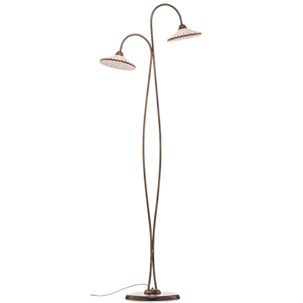 Gulvlampen Rosina med to keramiske lampeskjermer kombinerer rustikk sjarm med tidløs eleganse. Lampen er laget av høykvalitetsmaterialer som keramikk og jern, og passer harmonisk inn i stuen og spisestuen. Kombinasjonen av lysrosa og antikkbronse gir ethvert rom en varm og innbydende atmosfære. De nøye utformede keramiske lampeskjermene sørger for jevn lysfordeling og setter stilfulle aksenter.