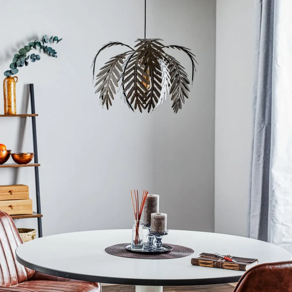 Hengelampen Dubai imponerer med sin unike palmedekor, som er laget av høykvalitets jern. Den bronsefargede fargen gir lampen et elegant utseende som passer harmonisk inn i forskjellige rom som stue, kjøkken, soverom og spisestue. Med en diameter på 46 cm blir den et stilig blikkfang i ethvert rom.