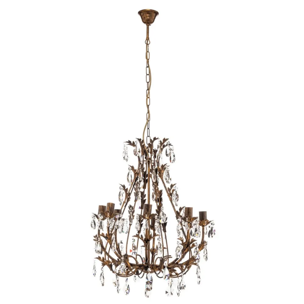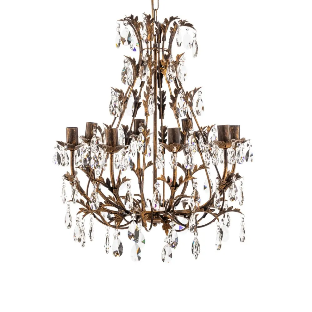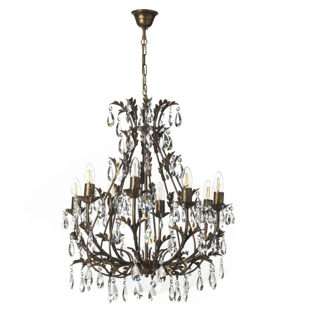 Lysekrone Botte i metall kombinerer florentinsk stil med høy kvalitet og gir ethvert rom et spesielt preg. Denne lysekronen med 8 lyskilder er laget av robust metall og dekorert med elegante krystallelementer, og skinner i en varm bronsefarge. Den kunstneriske utformingen og det nøye utvalgte materialet gjør den til et høydepunkt i stuer og spisestuer.