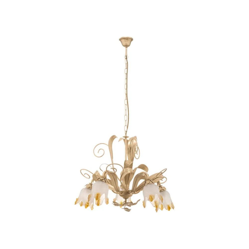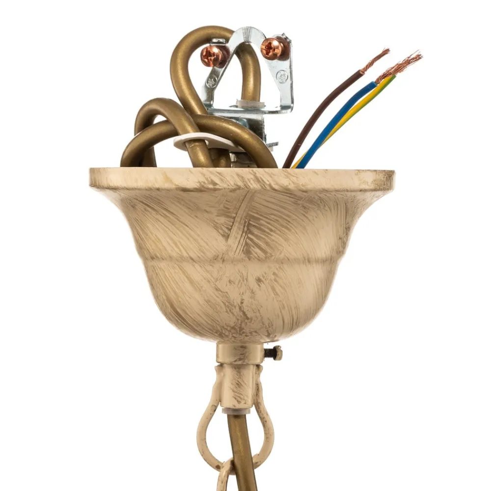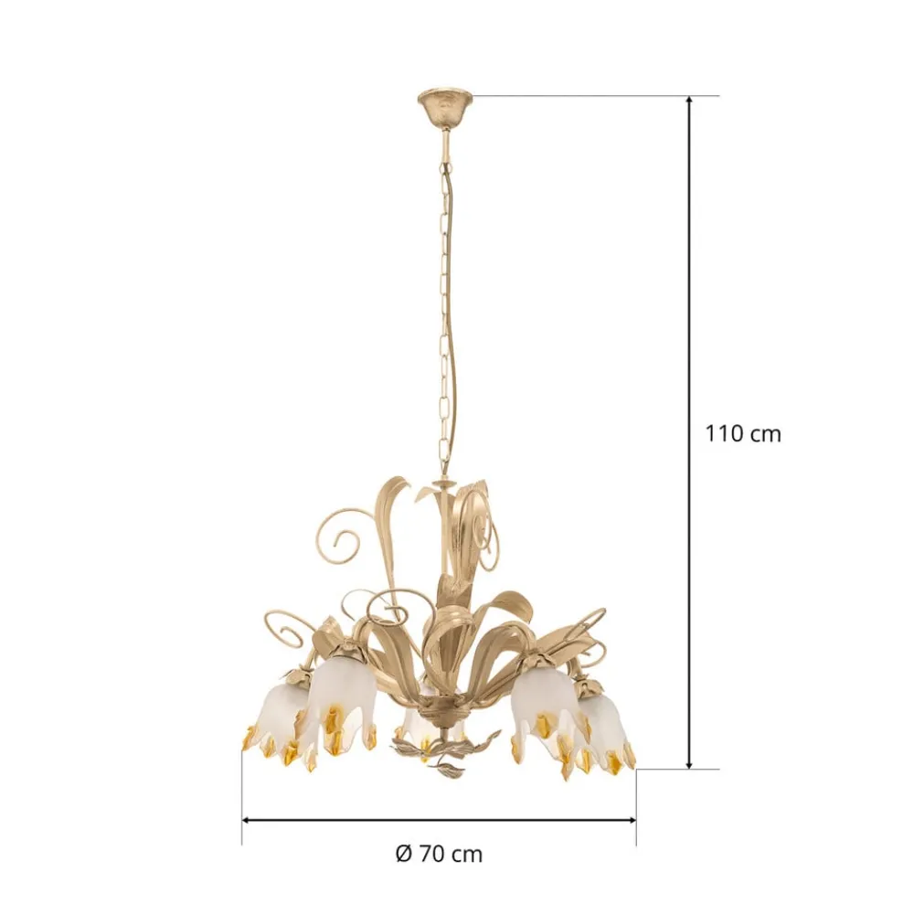 Lysekrone Elena i florentinsk stil kombinerer klassisk eleganse med høykvalitets håndverk. Den er laget av edelt jern og glass og skinner i en tiltalende antikk gull- og hvit farge. Denne kombinasjonen gir ethvert rom, enten det er stue eller spisestue, en unik atmosfære. De fem lysene i lysekronen sørger for en jevn og stemningsfull belysning som skaper både koselige og inspirerende øyeblikk.