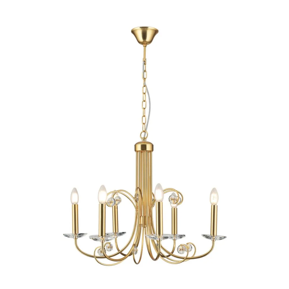 Ariane lysekrone, gullfarget, Ø 67,5 cm, krystall, 5 lyskilder.