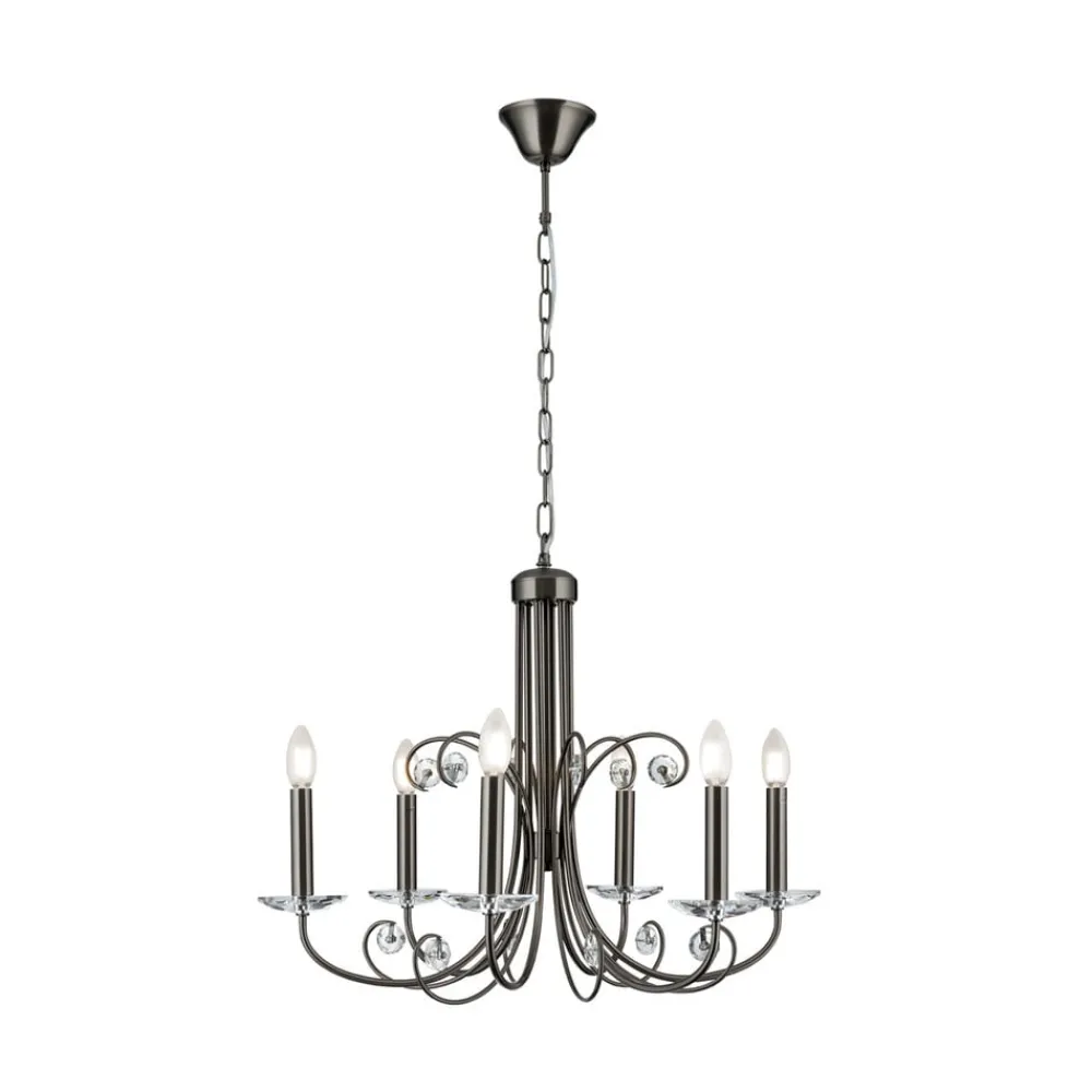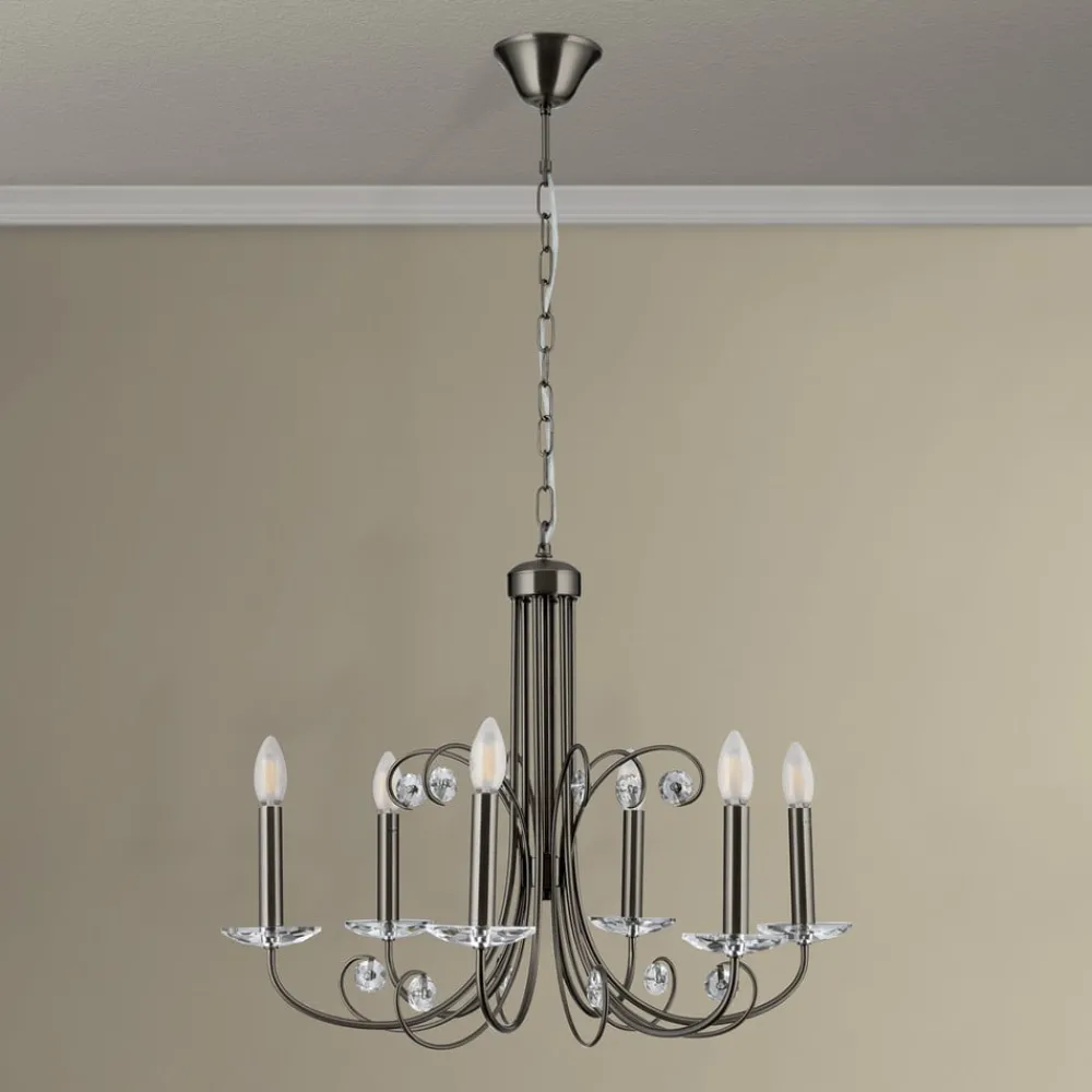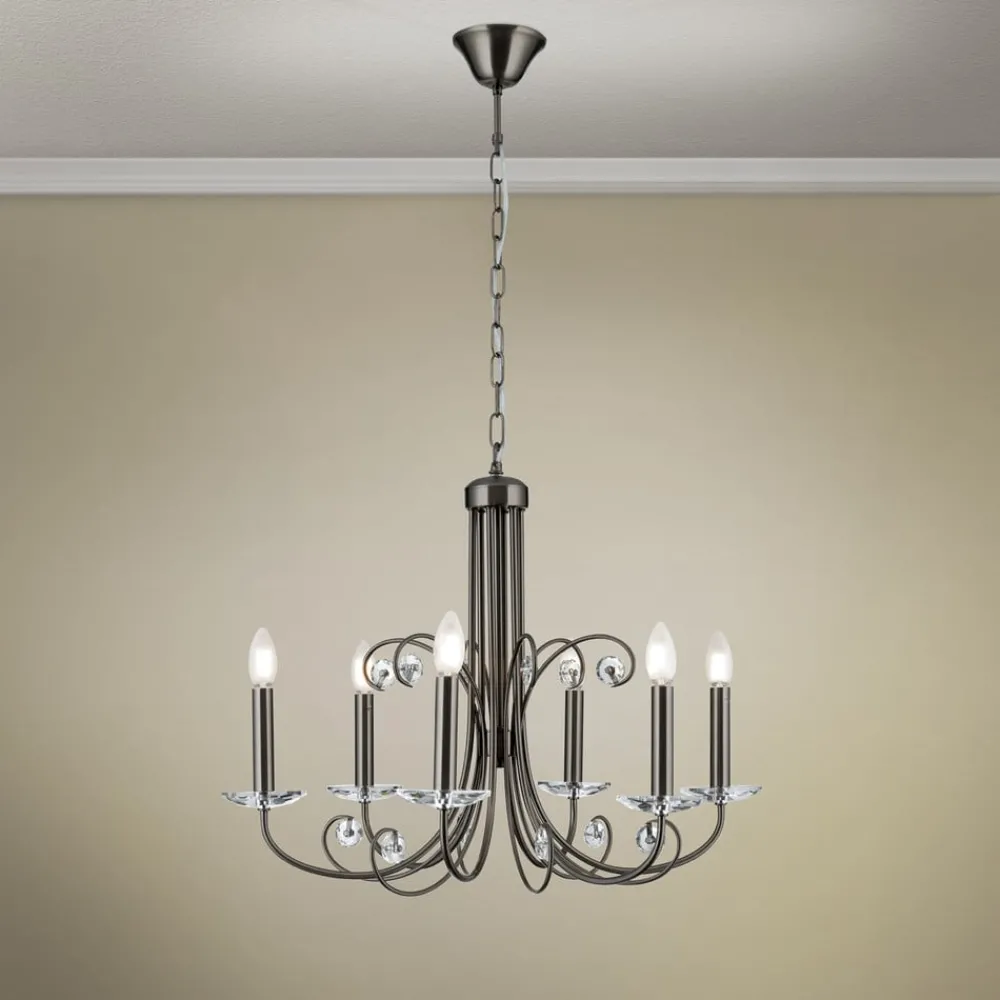 Ariane lysekrone med 6 lyskilder og K9-krystaller Eleganse og funksjonalitet smelter sammen i Ariane lysekrone for å skape en imponerende belysningsopplevelse. Denne utsøkte lysekronen er laget av høykvalitetsstål og glitrende krystallelementer, og er et ekte blikkfang for enhver stue eller spisestue. Med seks lyskilder gir Ariane lysekrone en balansert lysfordeling som skaper den rette atmosfæren for både intime middager og livlige samtaler. Selv om det ikke følger med en dimmer med denne modellen, kan lysstyrken justeres etter personlige preferanser ved å installere en ekstern dimmer. Dette gjør Ariane lysekrone til et fleksibelt element i romgestaltningen som smelter uanstrengt inn i det eksisterende interiøret og skaper den ønskede stemningen