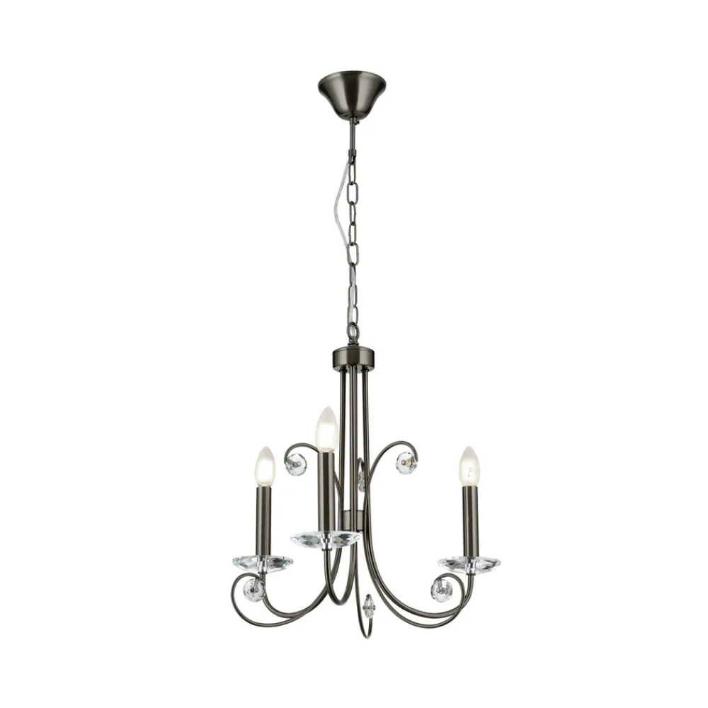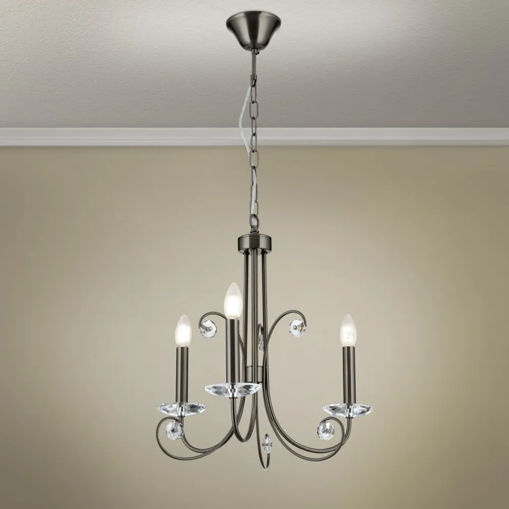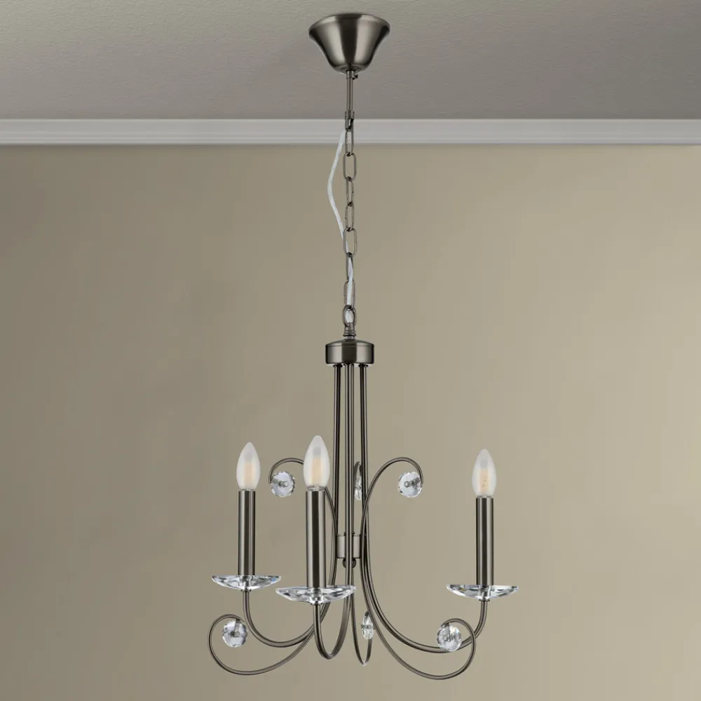 ORION Ariane lysekrone, nikkelfarget, Ø 50 cm, krystall, 3 lyskilder. Hot