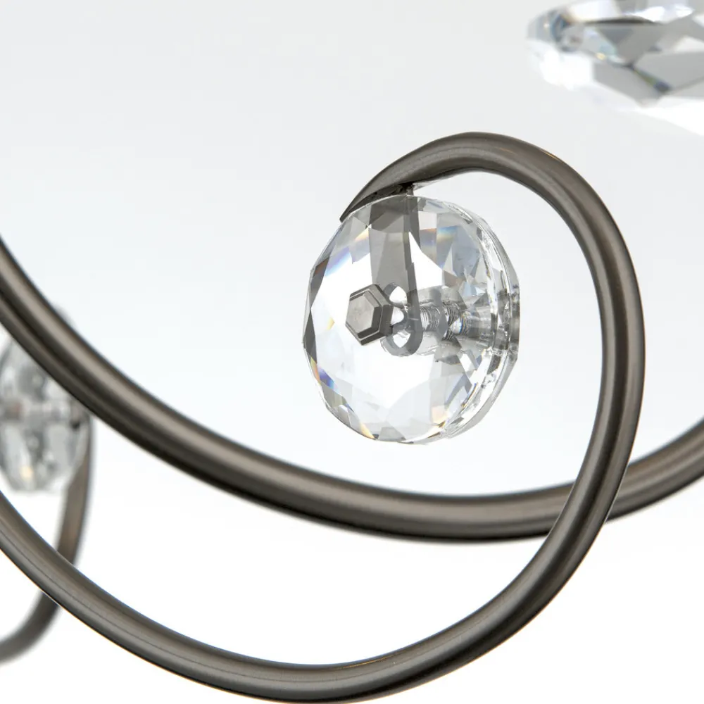 Lyskunst til stue og spisestue: Ariane lysekrone med 3 lyskilder Eleganse og funksjonalitet smelter sammen i Ariane lysekrone og skaper en lysopplevelse som forvandler rommet. Med en diameter på 50 cm og en kombinasjon av robust stål og glitrende K9-krystaller setter dette mesterverket med 3 lyskilder tonen i enhver stue eller spisestue. Selv om det ikke følger med en dimmer, kan Ariane enkelt kobles til eksterne dimmersystemer for å regulere lysstemningen individuelt.