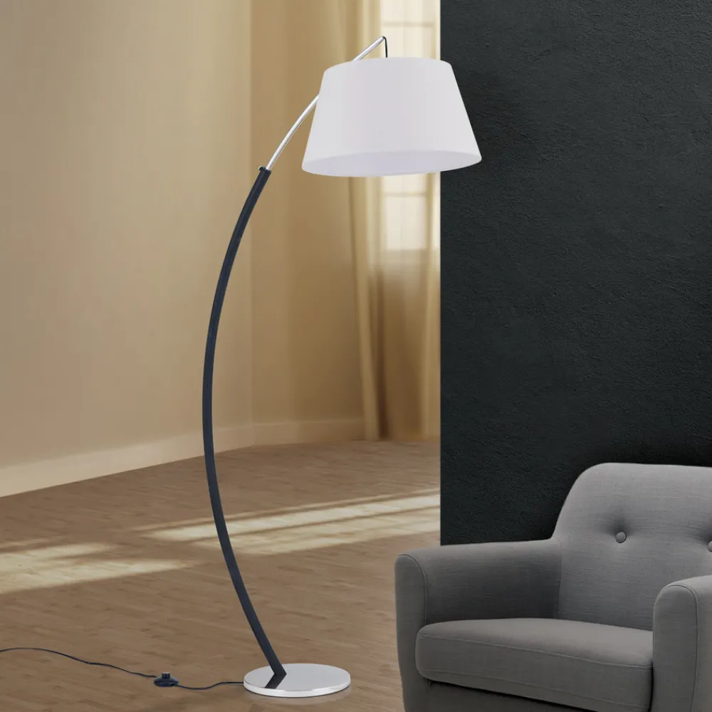 Høydejusterbar buet gulvlampe Philipp med fotbryter og skjerm av linDen svart- og kromlakkerte stålrammen til den bueformede gulvlampen Philipp kan varieres i høyden og dermed også i projeksjonen. Til dette formålet trekkes den øvre delen av stativet ut. Stoffskjermen i lin er beregnet for en E27-pære som kan kjøpes separat (se tilbehør). Med integrert fotbryter (av/på) i støpselkabelen.