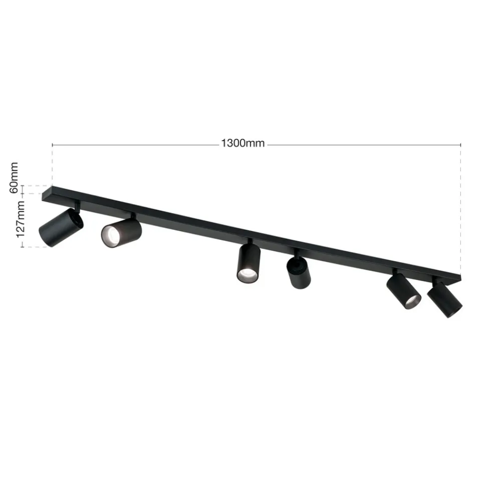 Sean takspot med seks lyskilder og roterende og dreibare spotsTakspottens seks lyskilder er montert ved siden av hveran…