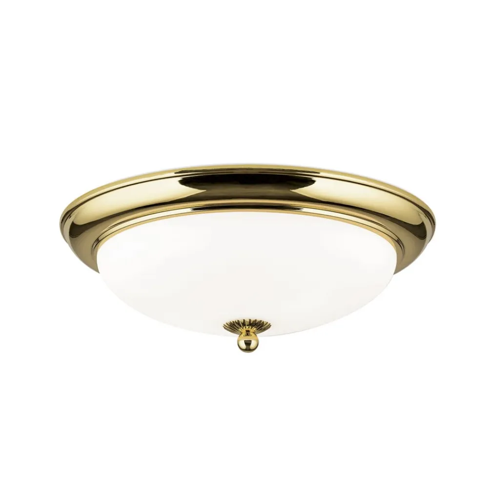 Empire taklampe, Ø 35,5 cm, gull, frostet opalt glass