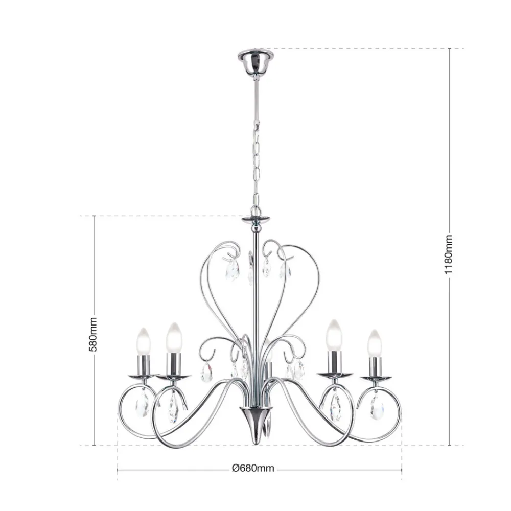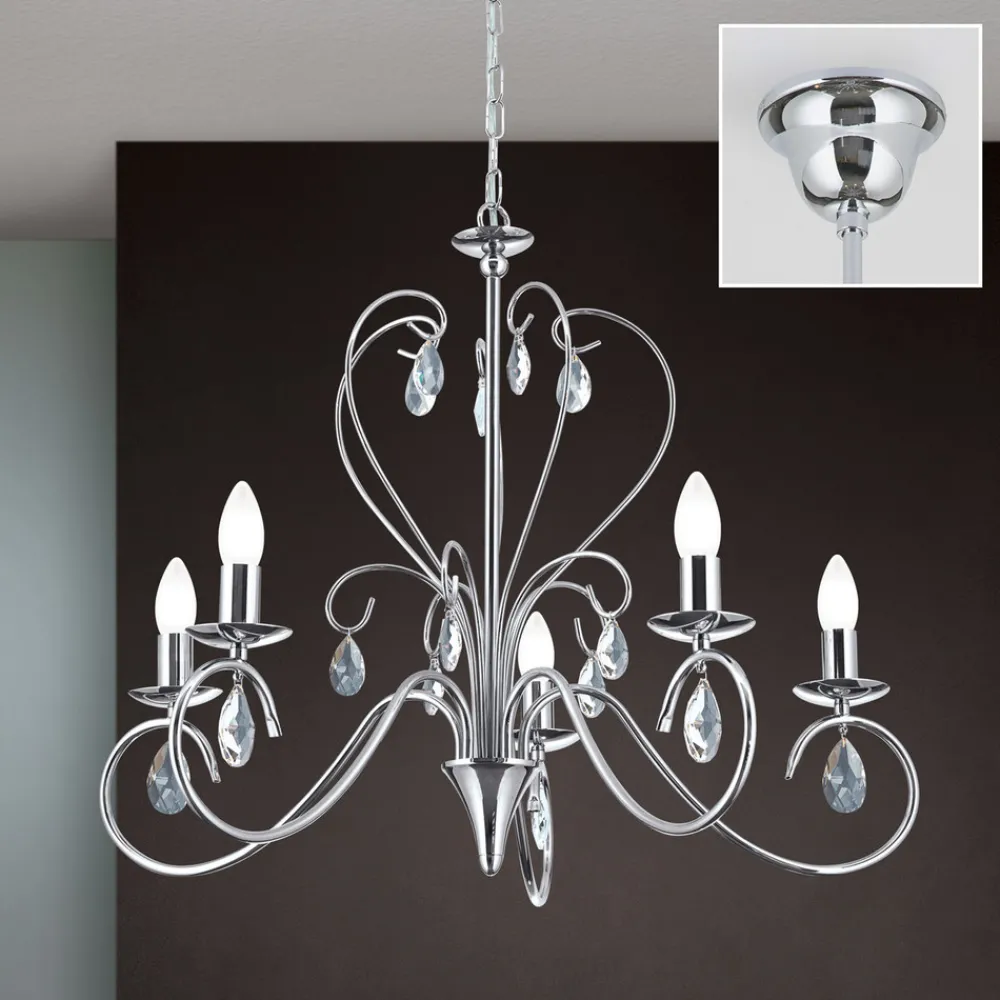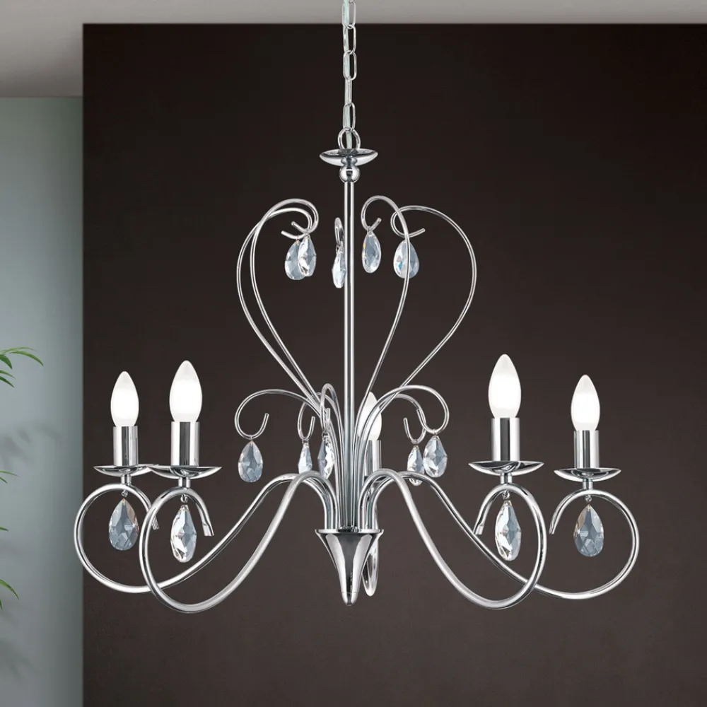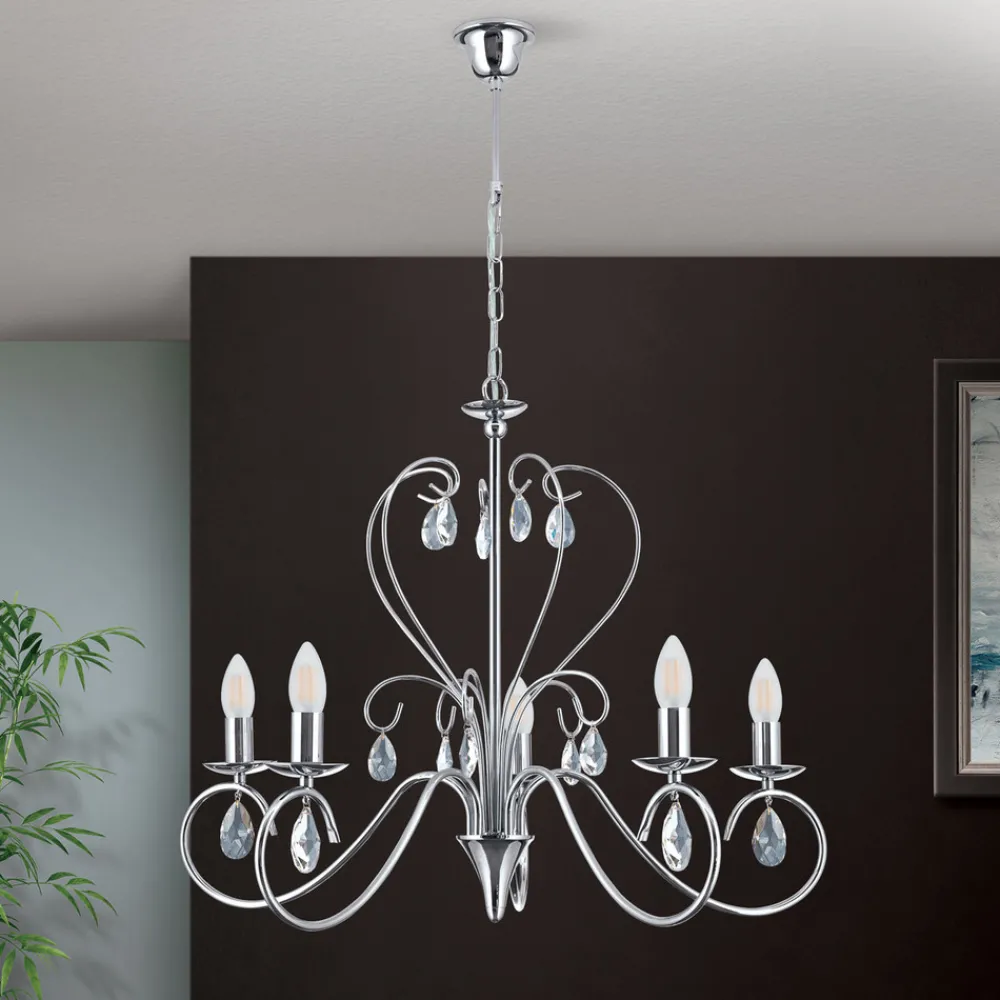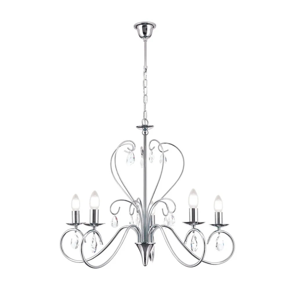 Grasiøs FIORETTO lysekrone i krom med fem lys