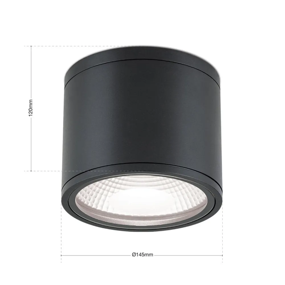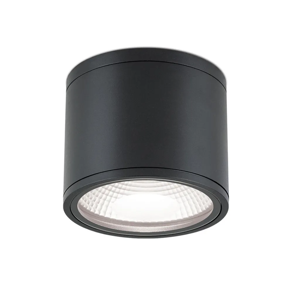 Rund LED-takspotlight Sputnik for utendørsområder eller baderomDen enkle taklampen Sputnik gjør en god figur spesielt i utendørsområder eller baderom og trosser perfekt både støv og vannstråler i henhold til beskyttelsesklasse IP65. Den sylindriske utenpåliggende taklampen har et beskyttelsesglass med en frostet sirkel i midten. Til tross for reflektorene sørger dette for behagelig lys som skinner nedover gjennom de varmhvite LED-ene, som er langvarige og energibesparende. I tillegg gjør den tidløse sylindriske formen til Sputnik utendørsarmatur at den passer til nesten alle interiørstiler.
