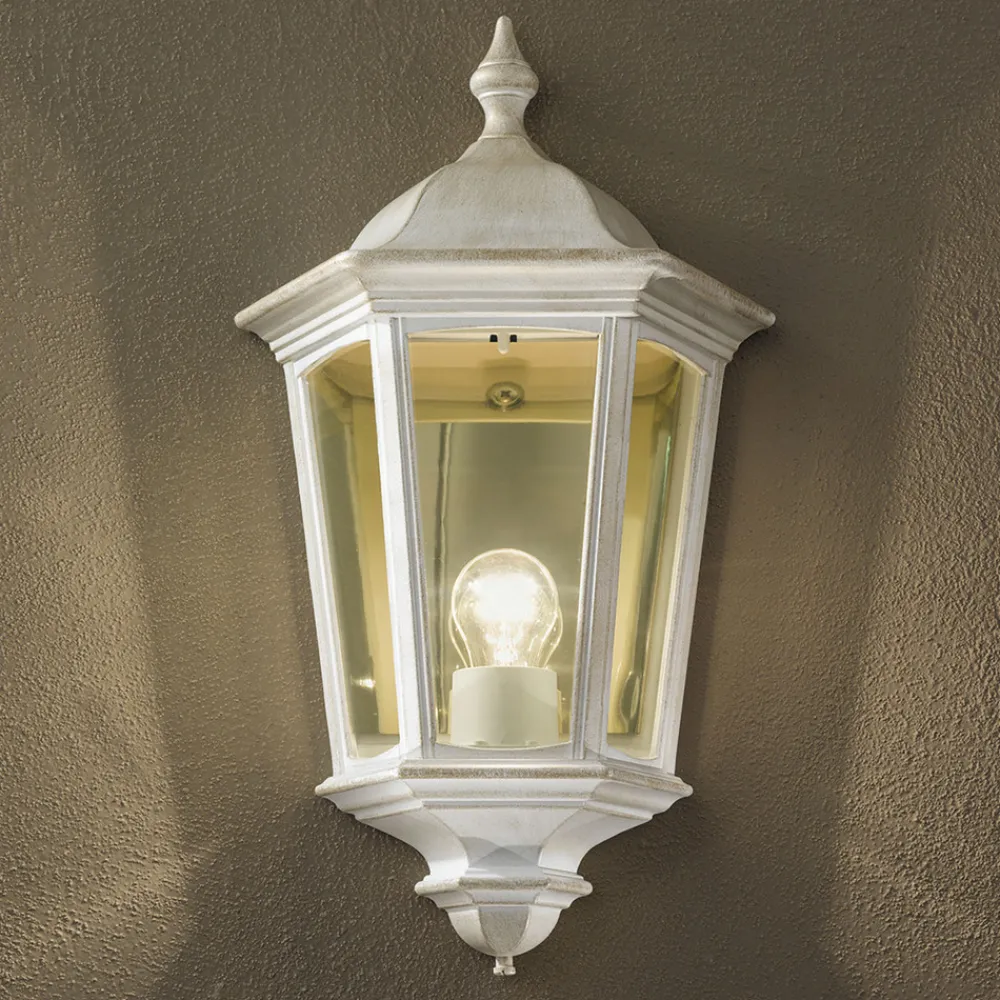 Puchberg-lampeserien garanterer en kombinasjon av behagelig lys om dagen og trygg belysning om natten. Aluminiumrammen i hvitt gull og tilsvarende glasselementer i røykgrå er harmoniske og uttrykksfulle. Vegglampen er laget i antikk stil og passer til enhver vegg. Både individuelt og sammen med andre Puchberg-lamper skapes det en klassisk og vakker utendørsbelysning.