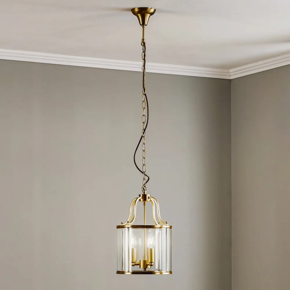 Stilig hengelampe Rieka med rund lanterneform som er 25 cm i diameter