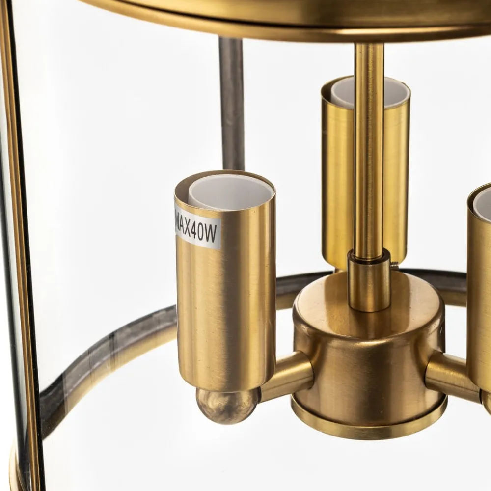 Hengelampen Rieka med sin bronsefargede metallramme og klare glass ser svært edel ut. Tre 40 watts stearinlyspærer sørger for en stemningsfull belysning. Lampens kjedeoppheng kan velges individuelt ved montasje. Lampen har en samlet lengde på 120 cm.