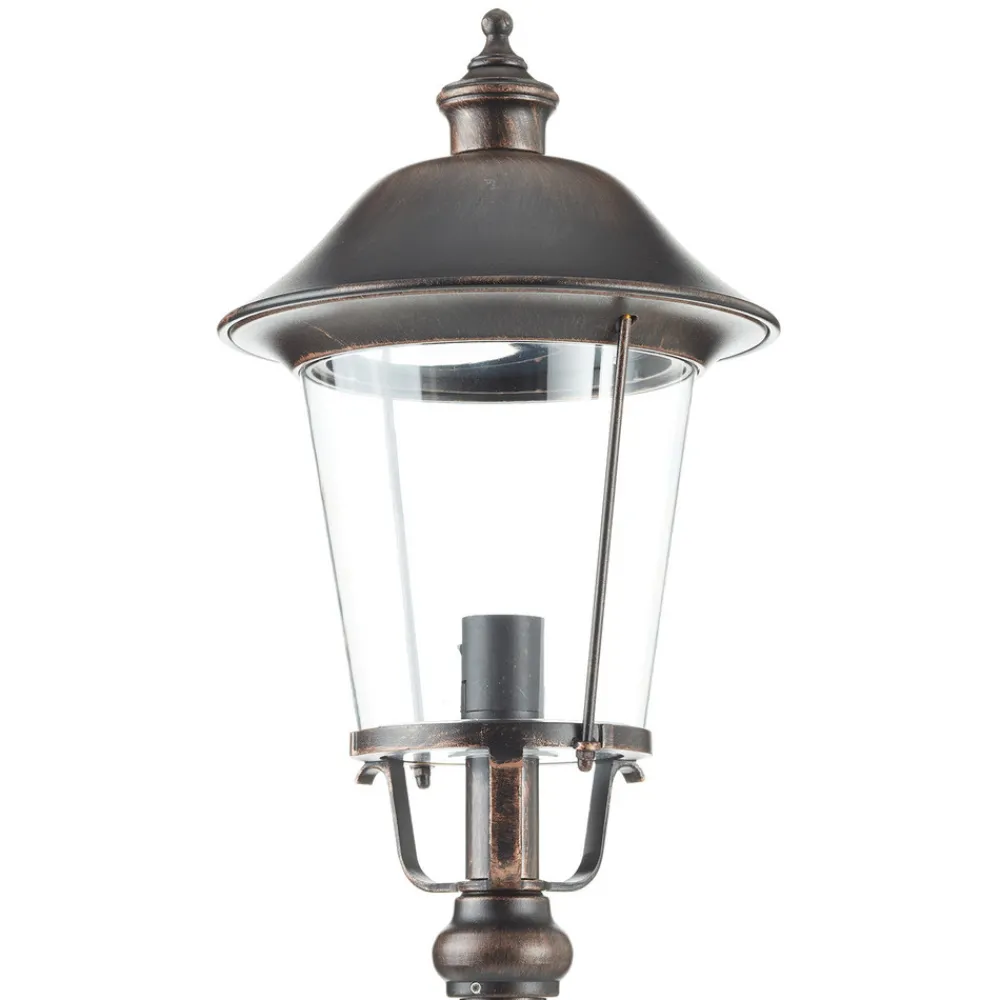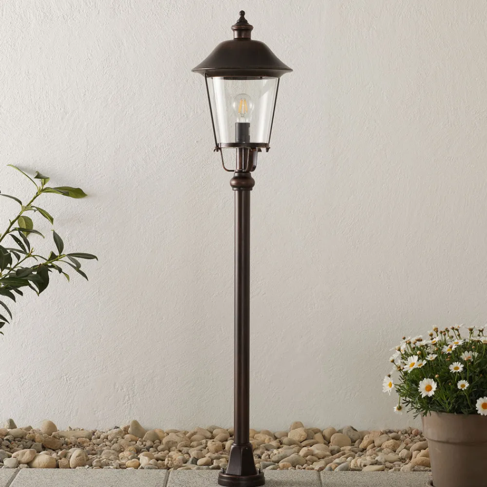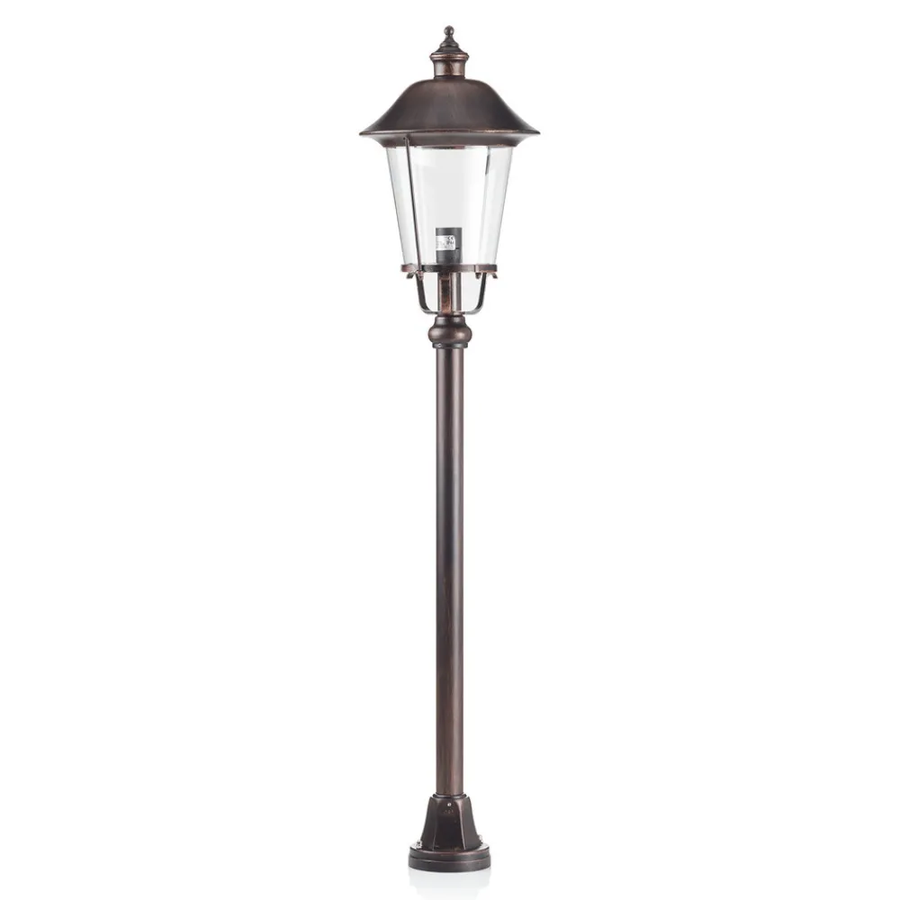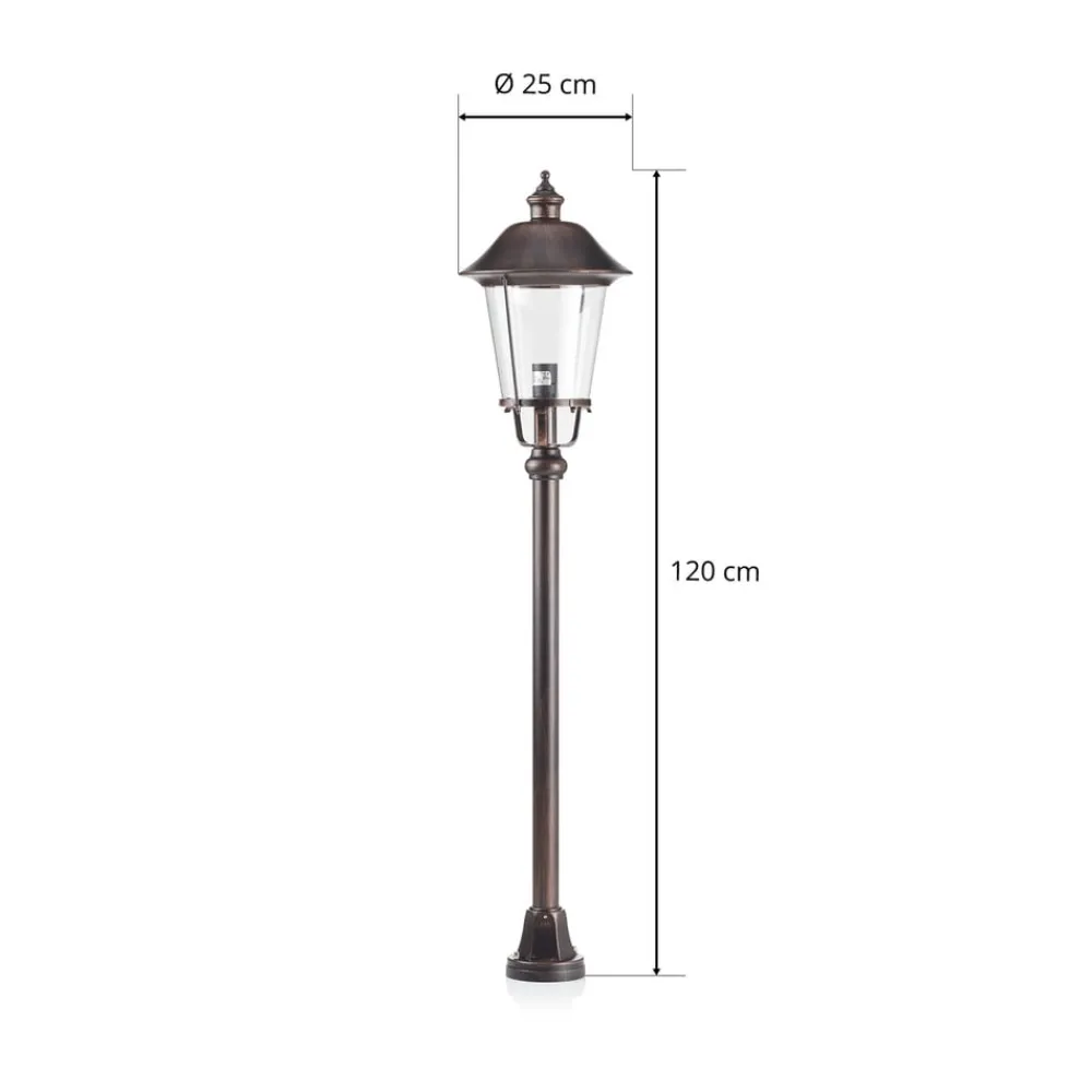 Gatebelysningen MARIELLAs skjerm gir den en sjarmerende, nostalgisk utstråling. Den ser ut som en klassisk lykt med svart og kobberfarget overflate. Gatebelysningen passer for eksempel godt i innkjørsler eller langs veier og stier i hagen. Skaper en god atmosfære rundt huset.