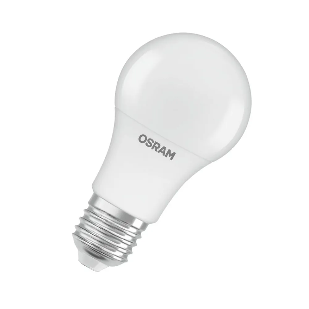 Laget av resirkulert plast: OSRAM Classic Star LED-lyskilde, E27, 4,9 W, 2700 K LED-lyskilden Classic Star med E27-sokkel gir varmhvitt lys og imponerer også med sin klassiske retrofit-størrelse og matte overflate. Siden det ikke er noen UV- eller nær-infrarøde komponenter i lysstrålen, er denne lyskilden ideell for belysning av varmefølsomme gjenstander som mat eller planter. Classic Star er laget av minst 40 % resirkulert plast, gir 100 % lys umiddelbart uten oppvarmingstid og er en universelt anvendelig LED-lyskilde.