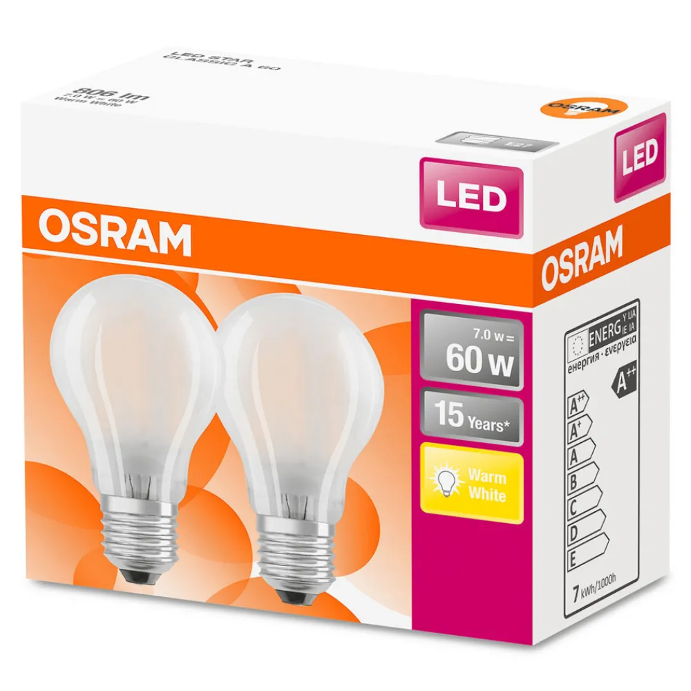 OSRAM LED-lampe Classic Retrofit 6,5W, 2700 K, matt i dobbelpakning