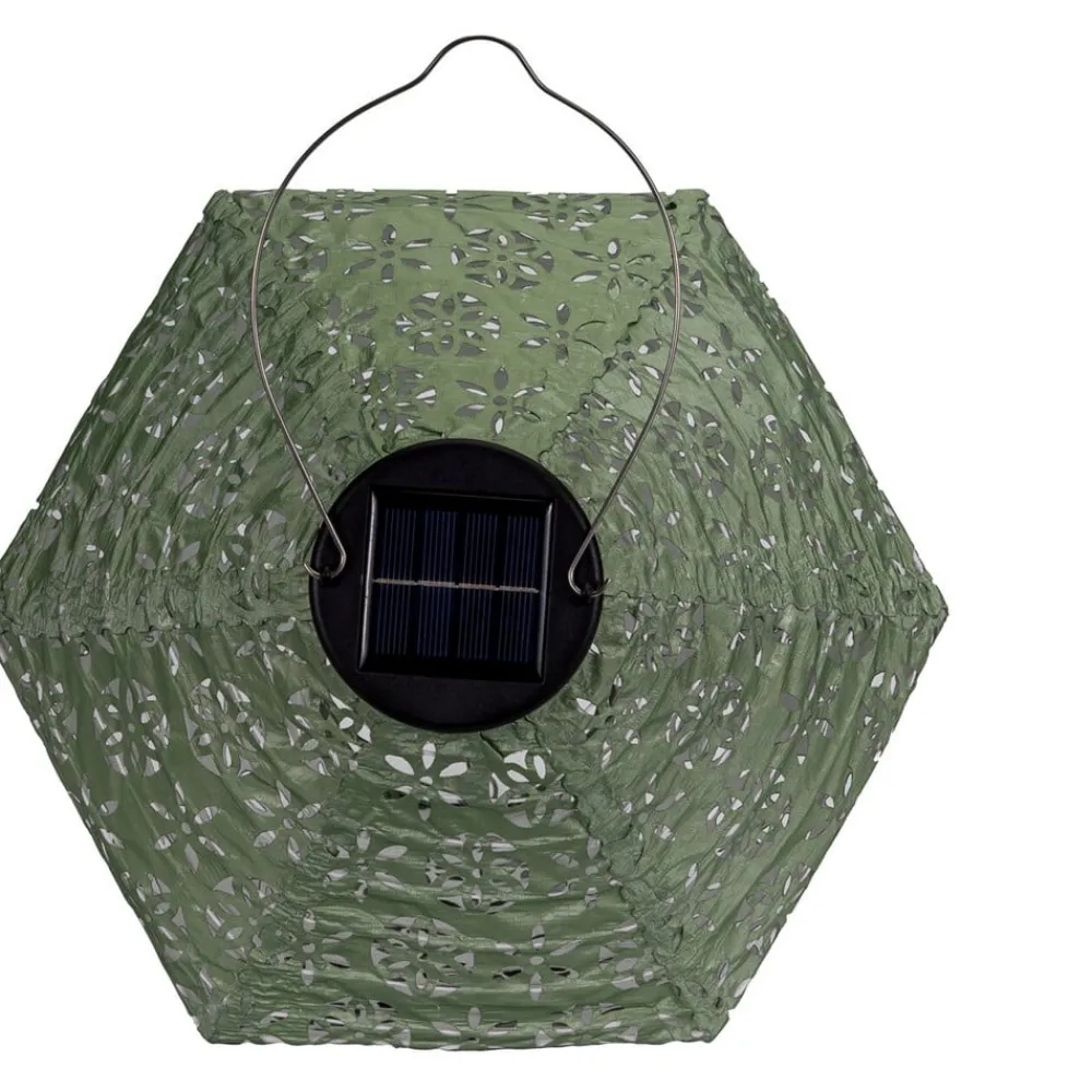 Grønn LED-dekorativ lykt Sunshine Flower med solcellemodul og oppladbart batteri for utendørs bruk LED-solcellelykten Sunshine Flower i grønn Tyvek® polyetylenfleece er et ekte høydepunkt for utendørs bruk. Ved å plassere den perfekt i hagen tilfører den hjemmet en helt spesiell sjarm. Om dagen glir den harmonisk inn i de naturlige omgivelsene, og om natten skaper den vakre lyseffekter. Håndtaket gjør det enkelt å henge den dekorative armaturen opp i trær eller på baldakiner. Takket være en ekstra, kortere brakett er det også mulig å henge den på jordspyd eller på stolper når du går tur med barna om høsten. Med sitt myke lys skaper Sunshine Flower en hyggelig atmosfære og innbyr til opphold. Solcellelykten er utstyrt med et oppladbart batteri som lades av en solcellemodul på toppen i løpet av dagen. I skumringen slår lyset seg på automatisk. Lyset varer i opptil 6 timer per lading. Sprutsikker i henhold til IP44.