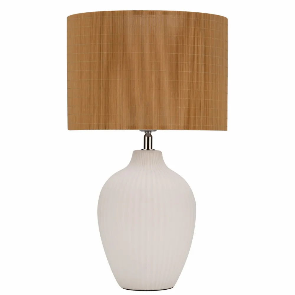 Timber Glow – bordlampe med keramisk sokkel og bambusskjerm