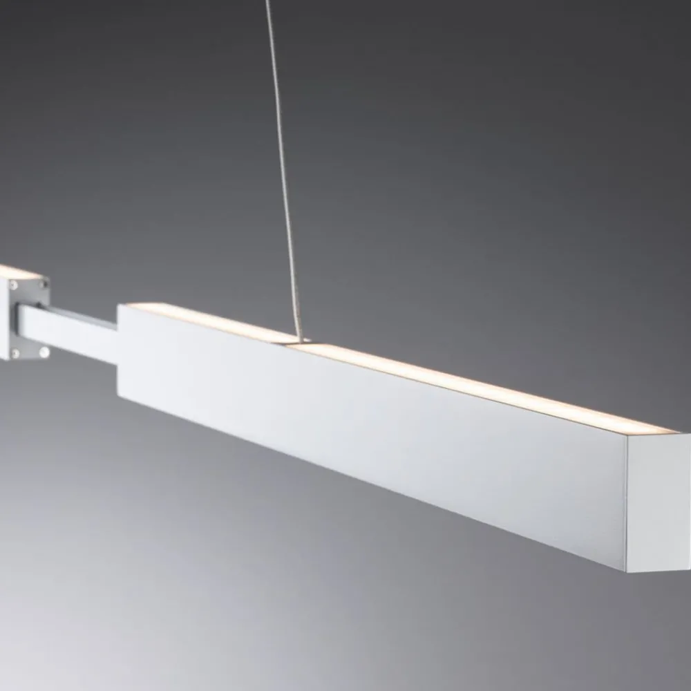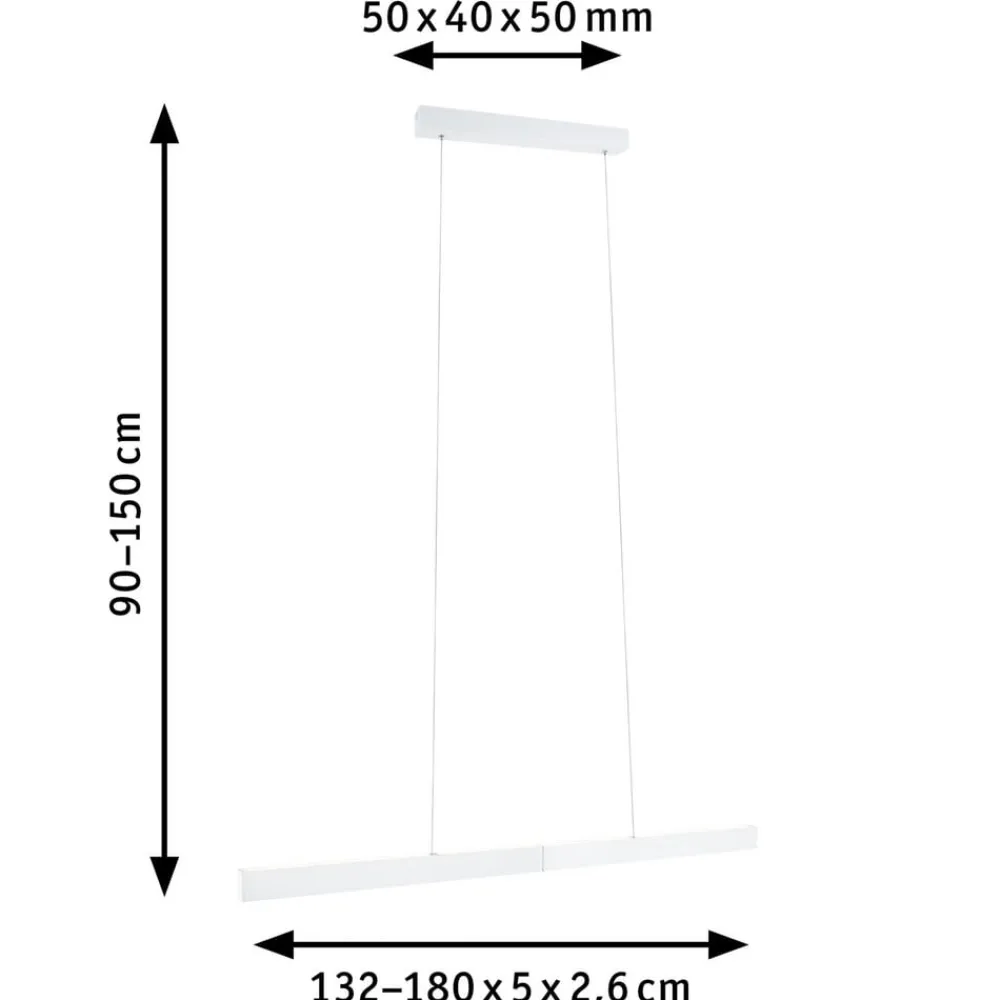 Dimbar ZigBee 3.0 LED-hengelampe Aptare med fjernkontroll og fleksibel høyde- og lengdejustering Navnet på LED-hengelampen Aptare sier det meste. Det er avledet fra latin og betyr «å tilpasse». Dette gjelder både opphengssystemet, som er trinnløst justerbart, og lengden. Aptare kan trekkes ut til siden, noe som skaper en visuell separasjon av lyskilden. Det robuste metallhuset gir den nødvendige stabiliteten, og Aptare er også fleksibel på den tekniske siden. Det varmhvite lyset sendes direkte nedover og indirekte oppover av lysdiodene av høy kvalitet, noe som gir god allmennbelysning. Den medfølgende fjernkontrollen kan også brukes til å dimme lysstyrken og enkelt slå lyset av og på. For enda mer funksjonalitet kan LED-hengelampen kobles til en ZigBee-bro, slik at alt kan styres via en smarttelefonapp eller stemmeassistent. Paulmann tilbyr selv smik-gatewayen til dette formålet, inkludert en gratis app for iOS og Android (se tilbehør). Ettersom Aptare bruker den trådløse ZigBee 3.0-protokollen, kan den også integreres i et eksisterende smarthussystem fra andre produsenter, for eksempel Philips Hue eller IKEA Tradfri. Den medfølgende fjernkontrollen kan brukes til å styre opptil 20 ZigBee-kompatible lys eller pærer, også inndelt i grupper. Tekniske data/kompatibilitet: – Inkluderer ZigBee-fjernkontroll – Basert på ZigBee 3.0-radioprotokollen – Kompatibel med ZigBee-baserte smarthussystemer som Philips Hue eller IKEA Tradfri – Høyde (90 – 150 cm) og lengde (132 – 180 cm) justerbar – Dimbar via fjernkontrollen