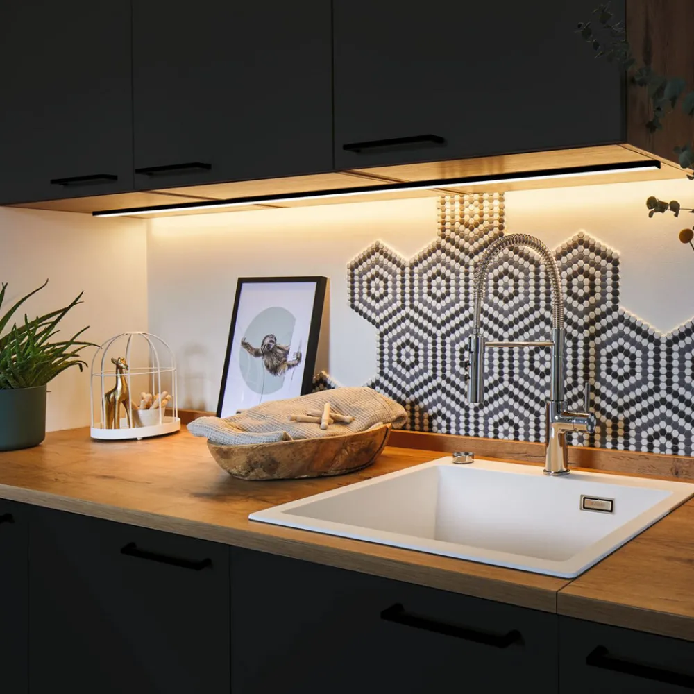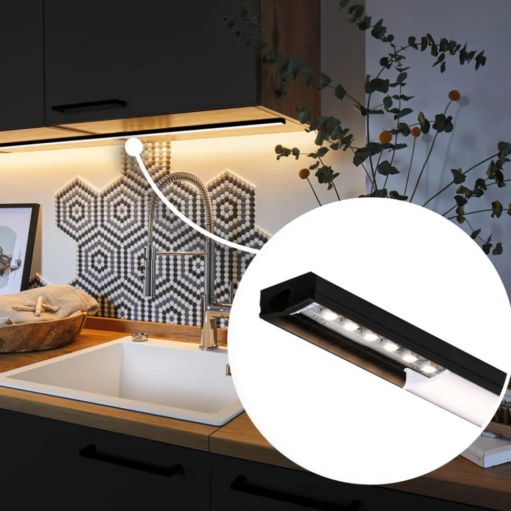 På møbler eller vegger muliggjør denne aluminiumsprofilen homogen omgivelsesbelysning. Den kan utstyres med en MaxLED LED-stripe og gir en spesielt jevn lysutslipp takket være sateng-plastdiffusoren. Den robuste aluminiumsprofilen er malt i matt sort.